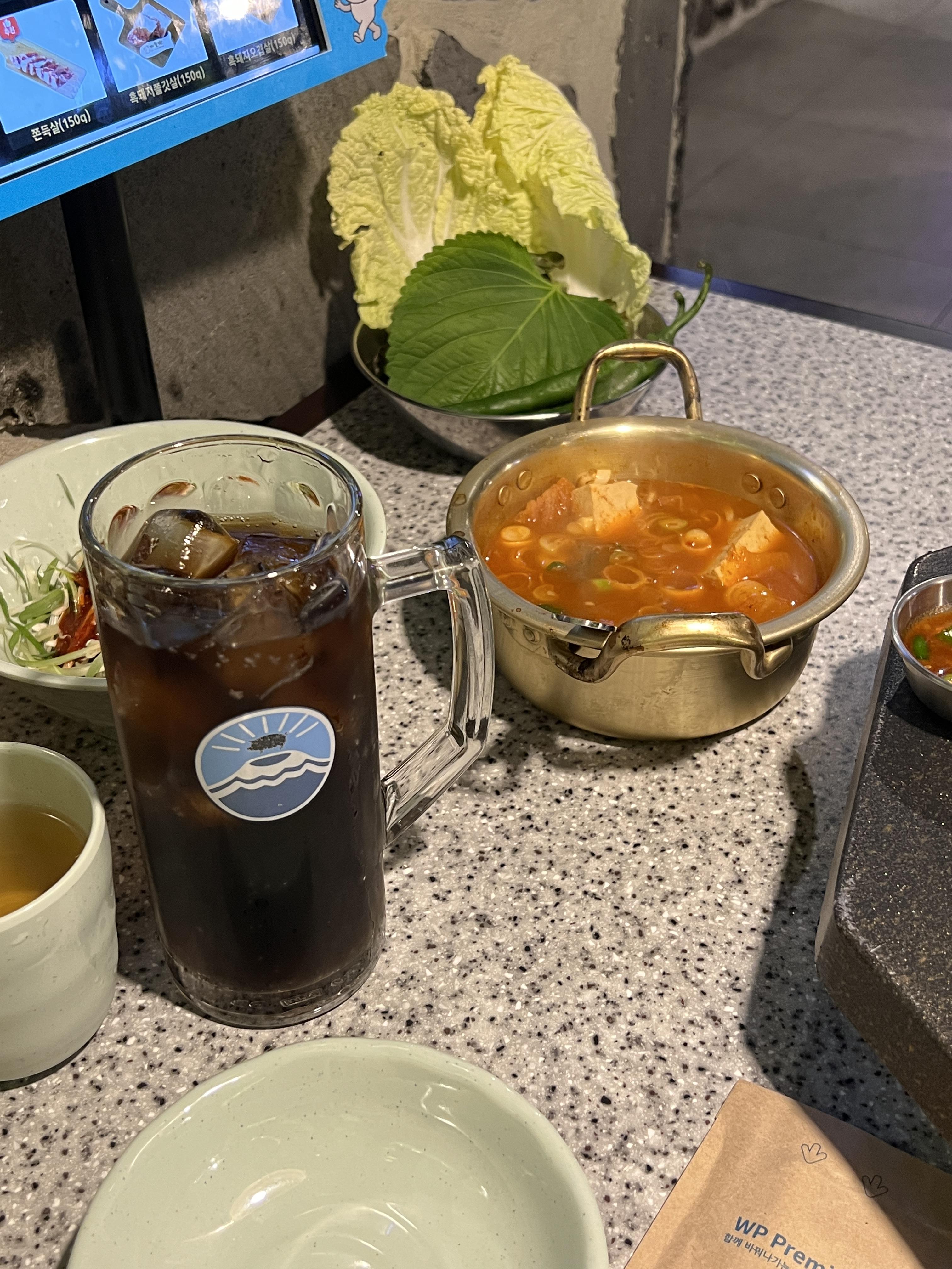 김치찌개가 칼칼하고 얼큰한 게, 소주를 부르는 기본 안주였어요.