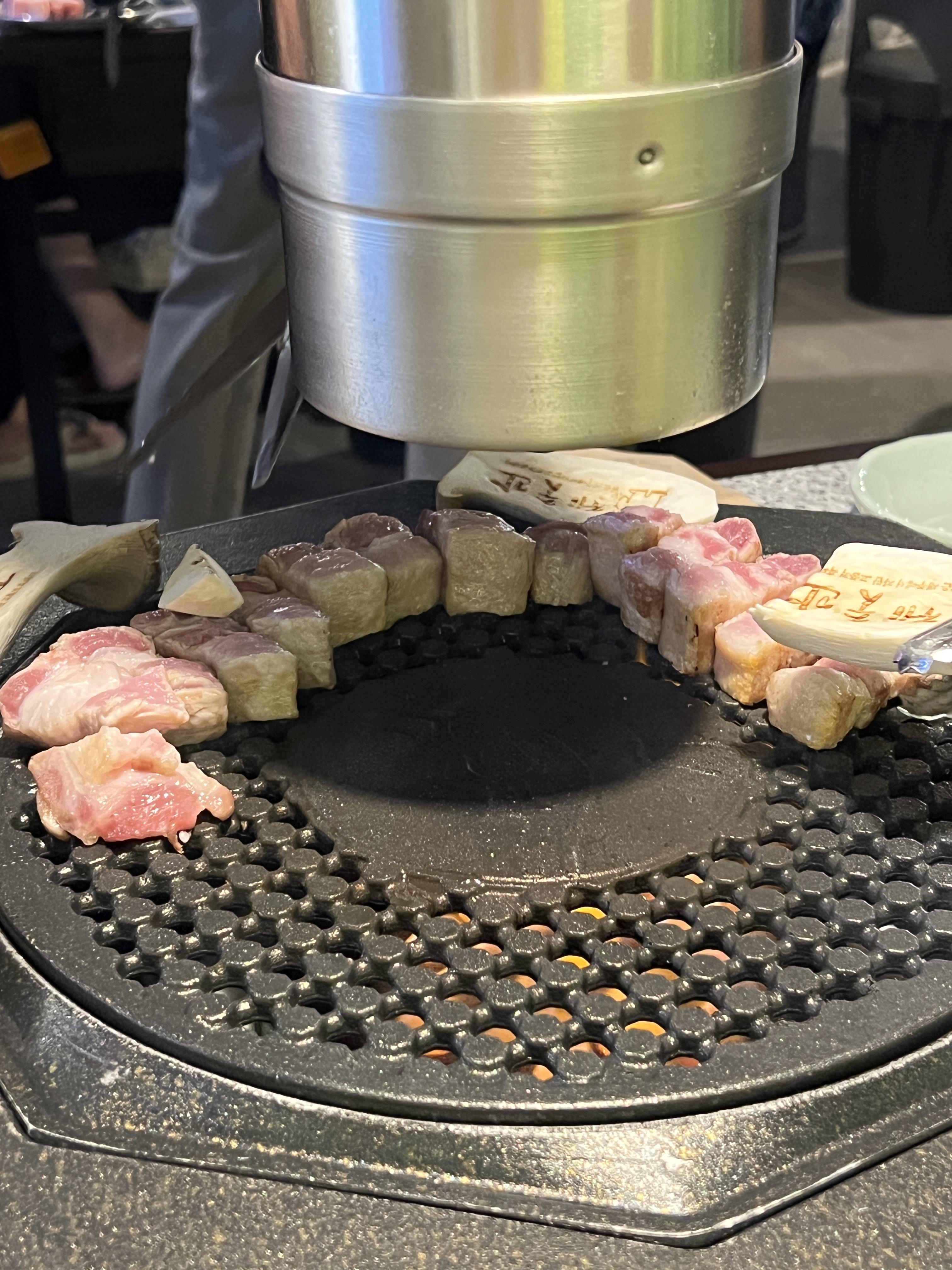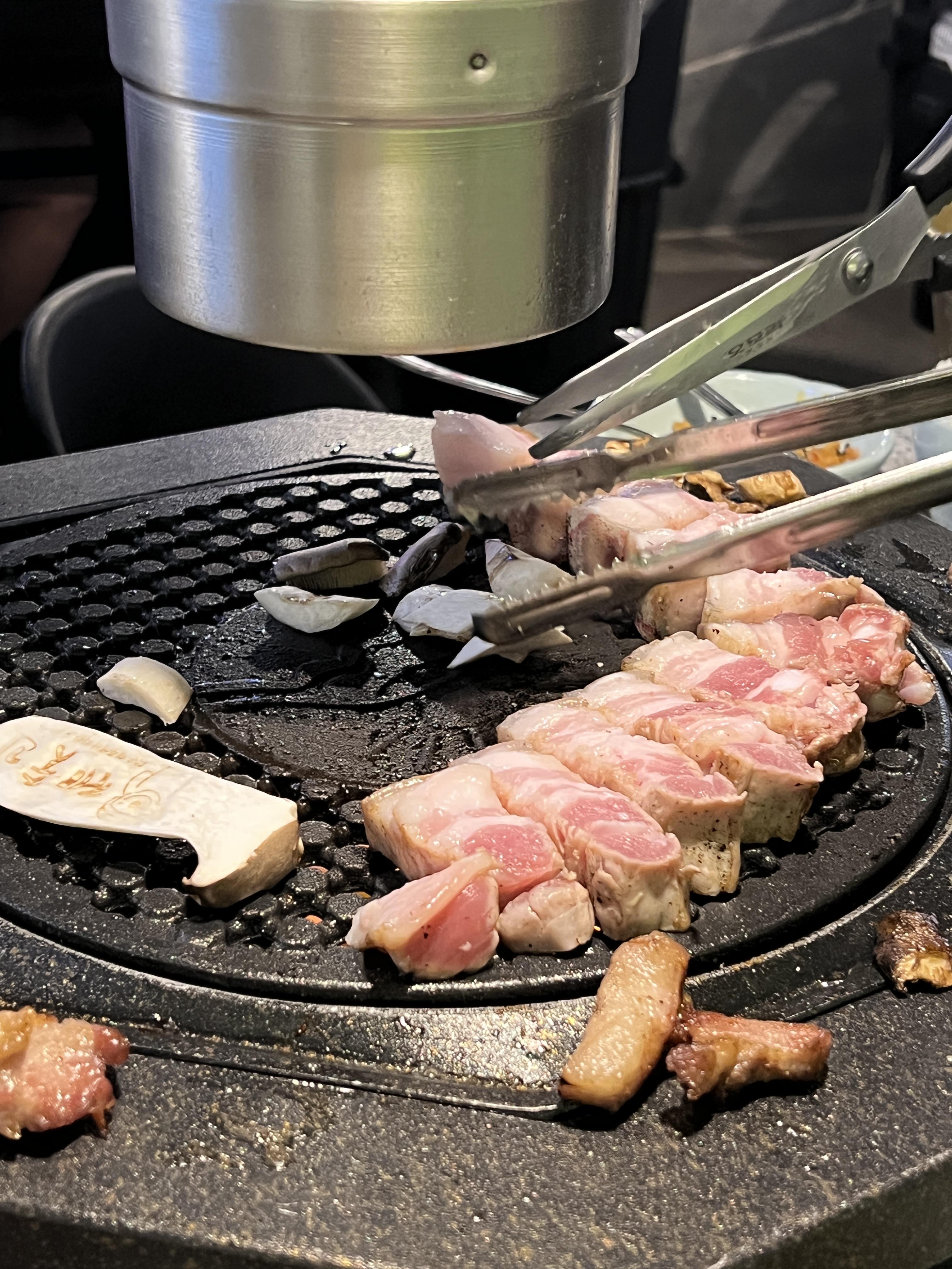 고기를 더욱 맛있게 즐길 수 있게 고기에 맞춰서 구워주시는데 특목살의 경우 쫄깃살과 목살 부분을 나중에 구분해서 구워주세요.