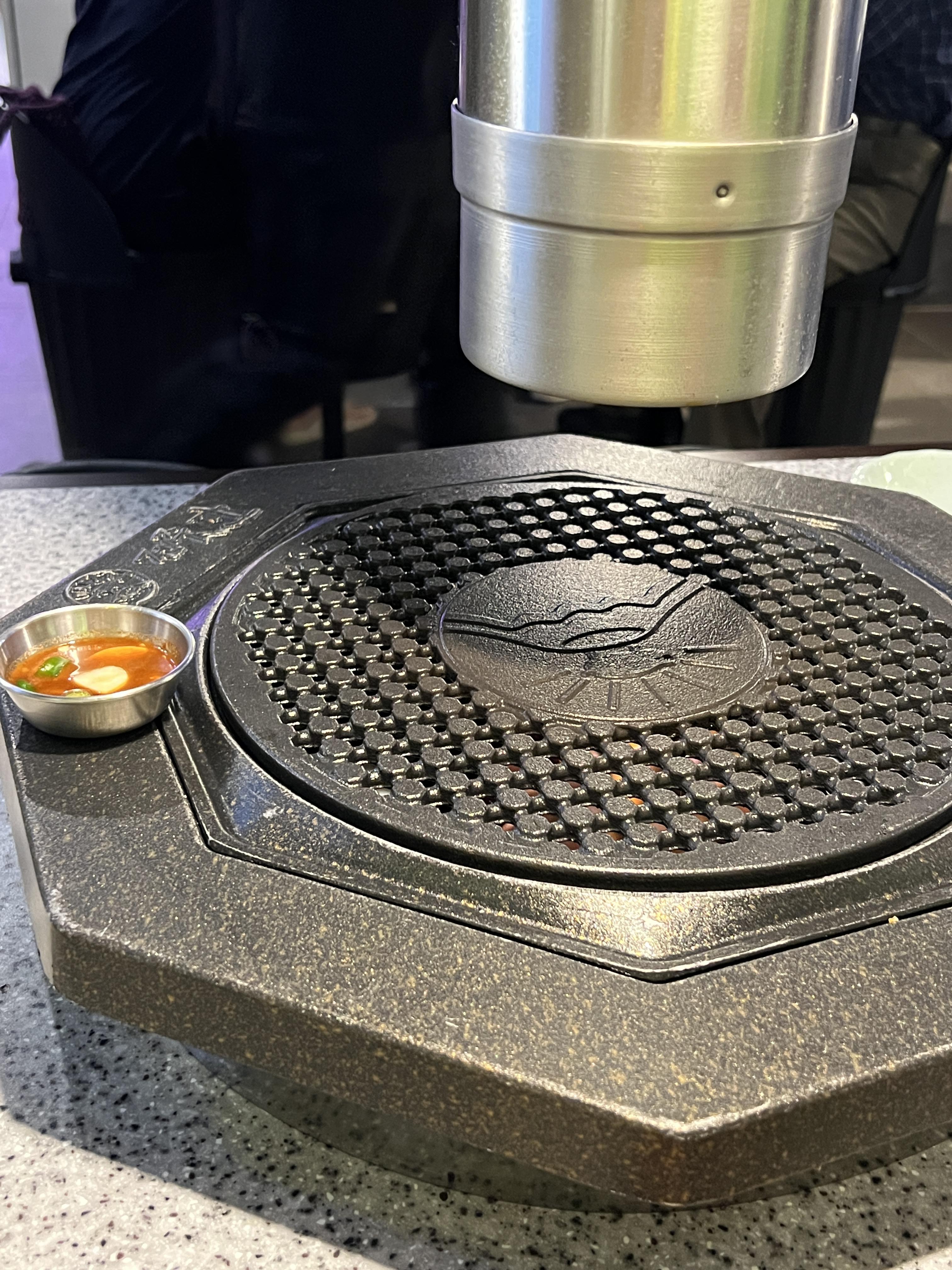 불판 위에 올려져 있는 멜젓도 맛있습니다.