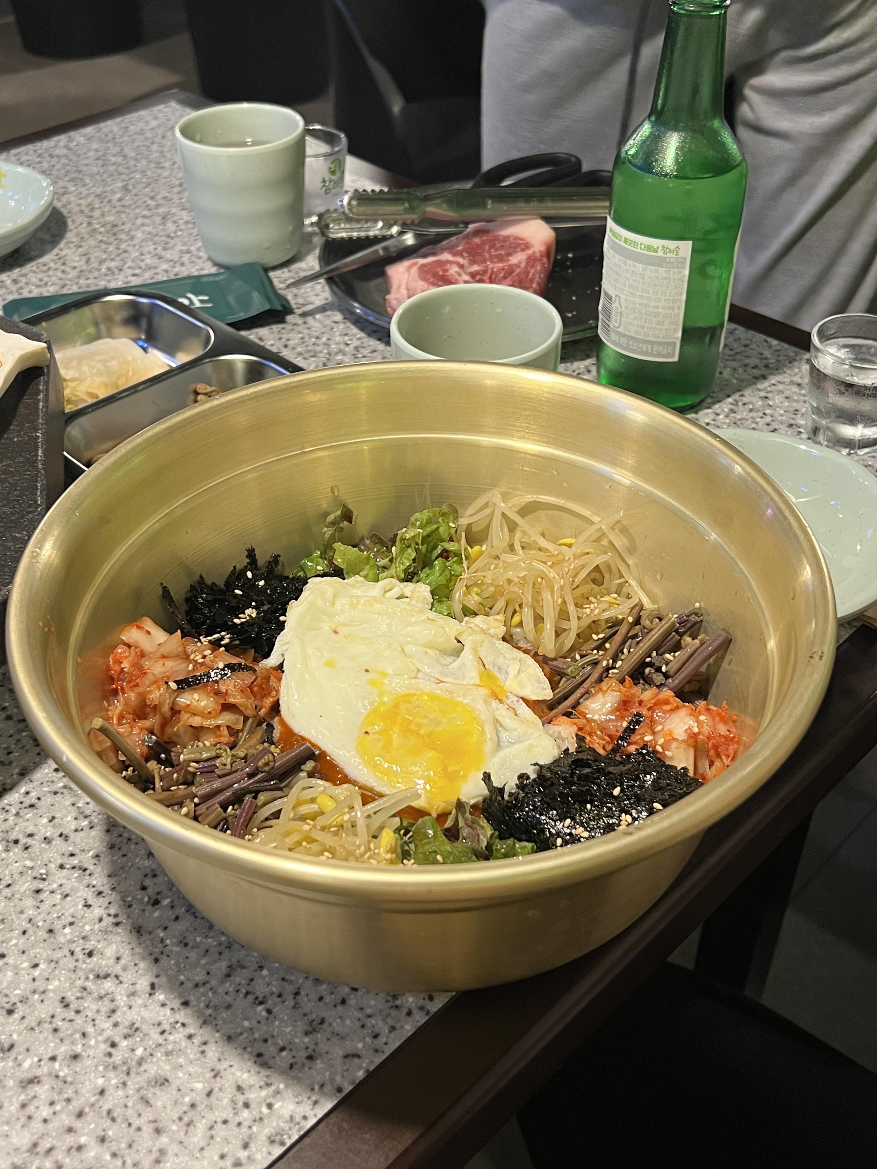 비빔밥 시켜서 고기와 같이 먹어도 좋은 거 같아요.