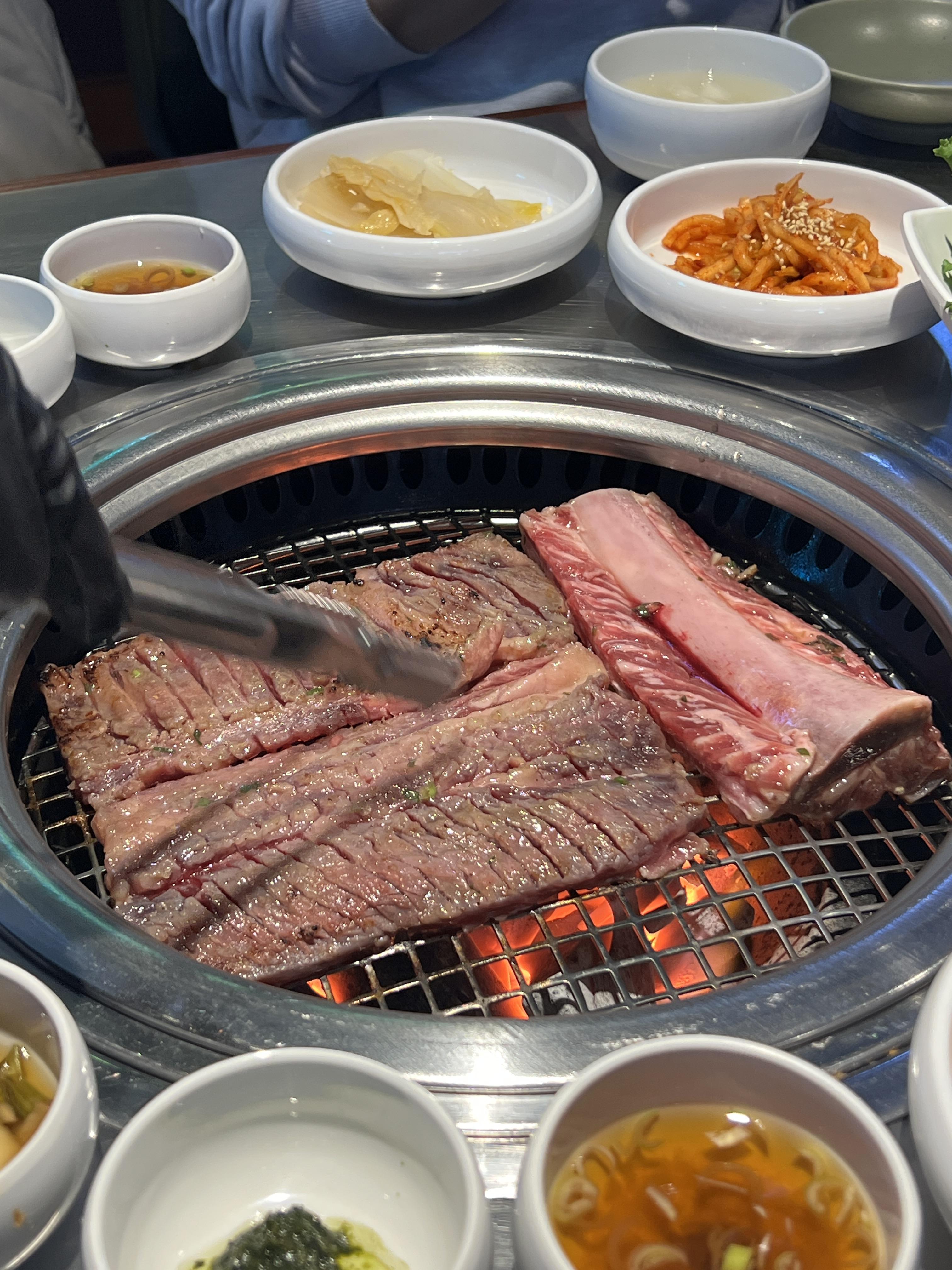 육회를 즐기다 보면 갈비가 어느새 맛있게 구워져 먹기 좋은 크기로 잘라져 있었습니다.