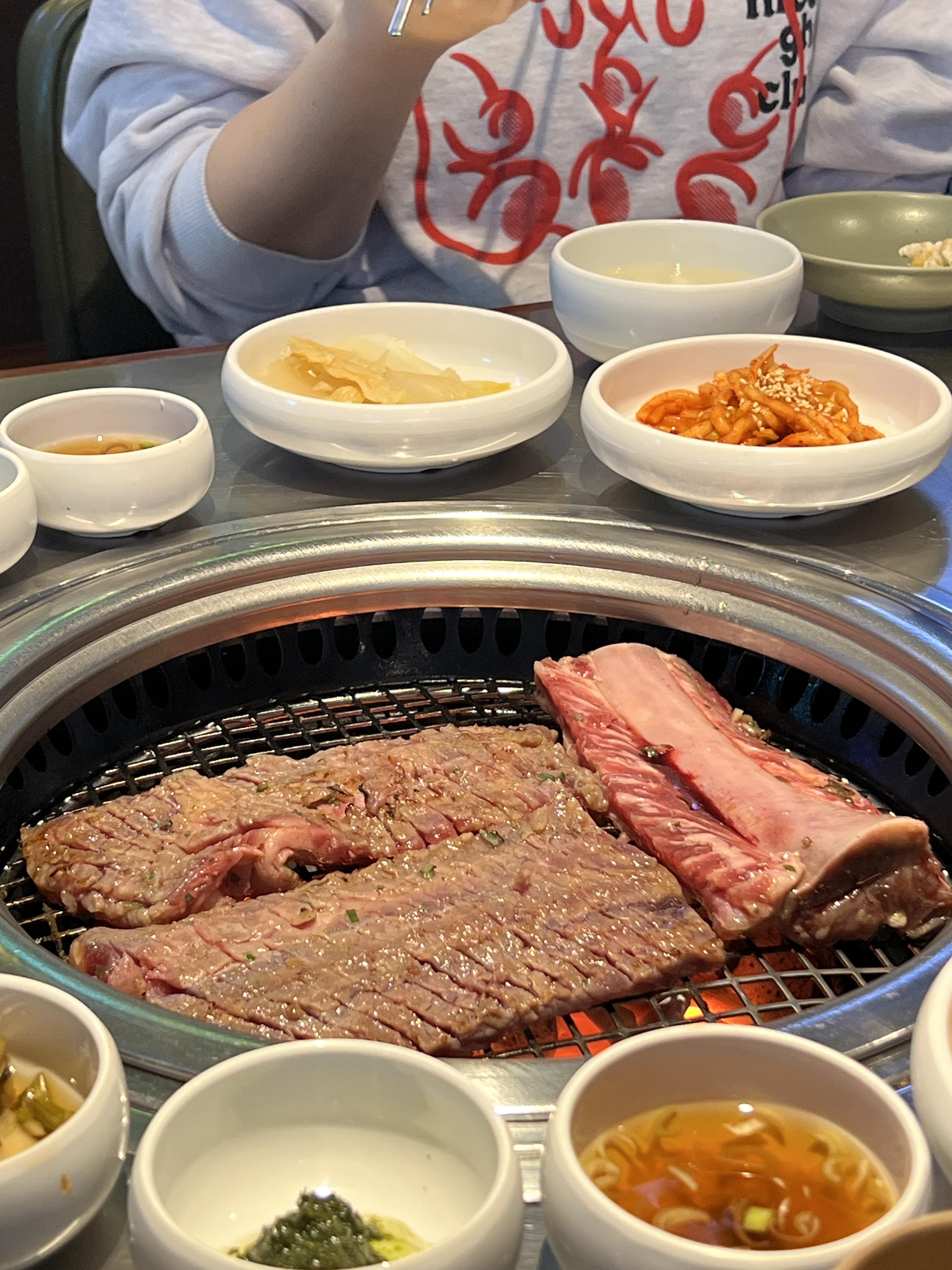 고기는 직원분이 직접 구워주시며, 불판이 하향식이다 보니 연기가 나지 않아 좋았고