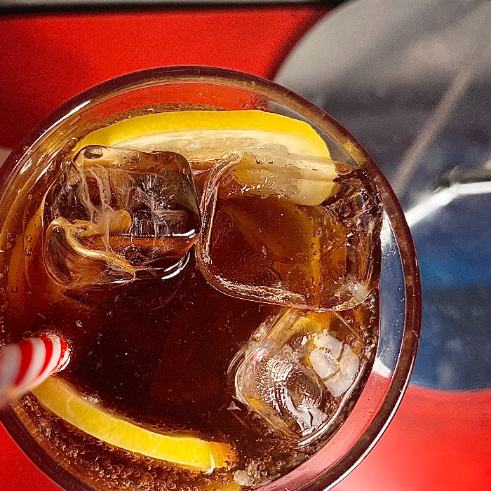 레몬 슬라이스가 가득 들어가 있어 더욱 시원하고 맛있게 콜라를 마실 수 있었어요.