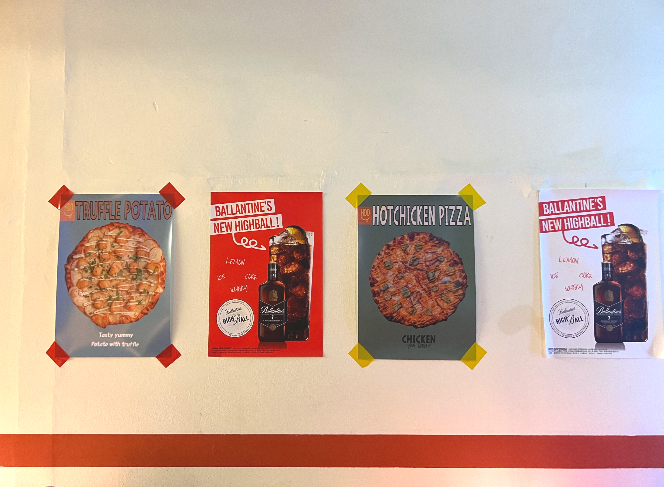 내부 인테리어를 보면 벽에 붙어있는 포스터나 소품들이 피자가 잘 보이게 연출이 되어있는데 과하지 않고 하나 한눈에 잘 보여서 좋았던 거 같아요.