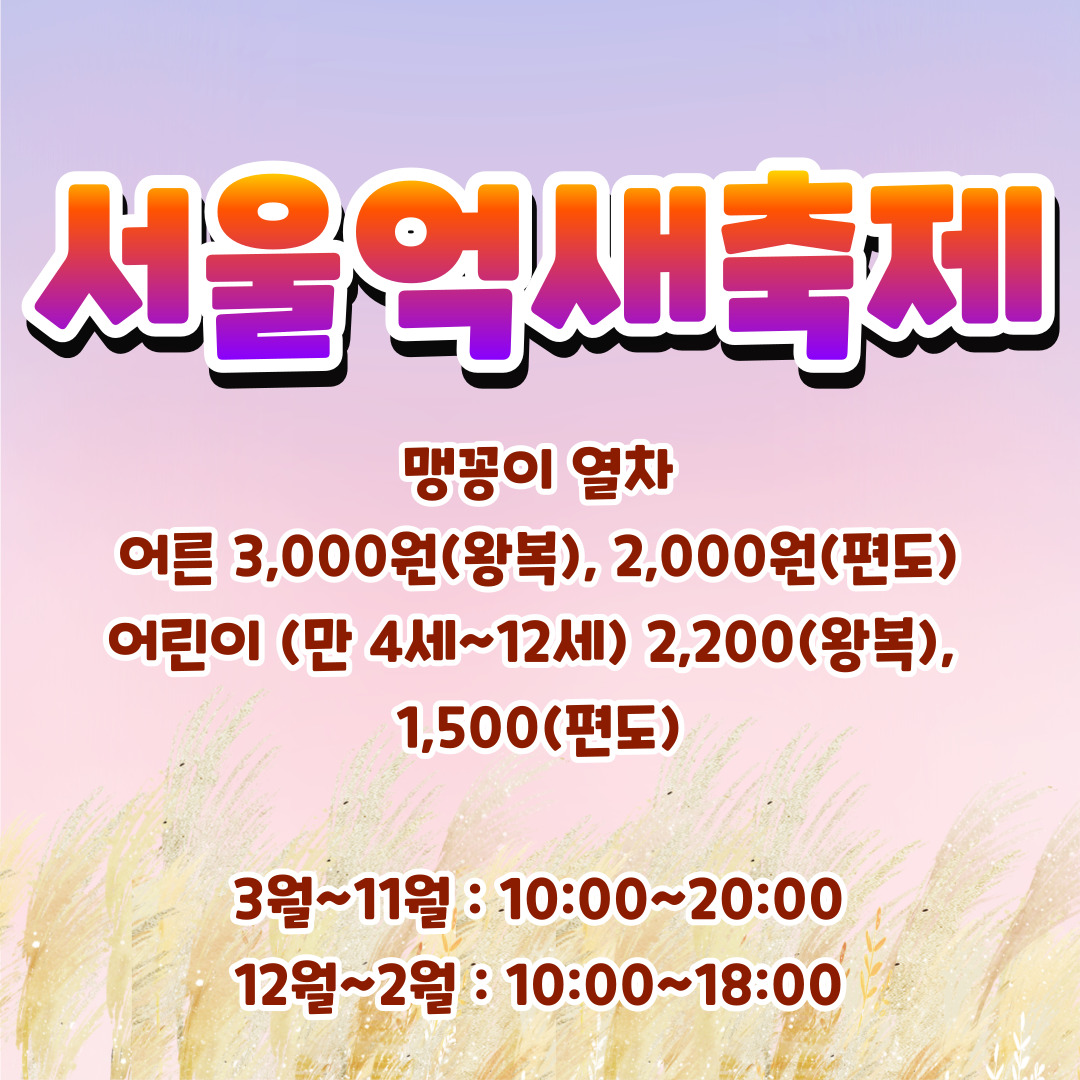 그중 매년 빠질 수 없는 서울의 가을 축제 중 하나가 바로 월드컵공원의 하늘공원에서 열리는 억새축제입니다.