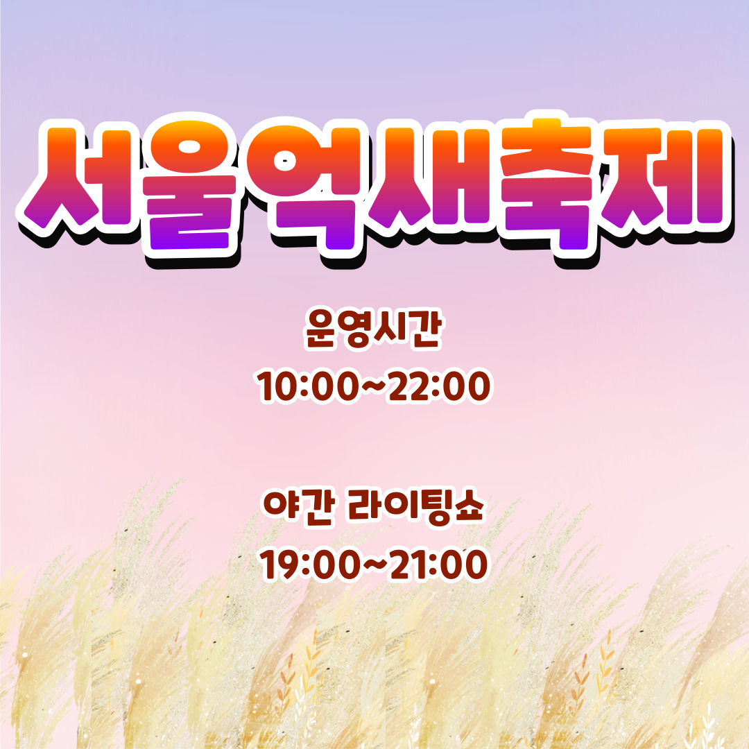 서울의 야경도 즐기며 억새꽃이 만발하는 가을밤을 느낄 수 있는 축제입니다.