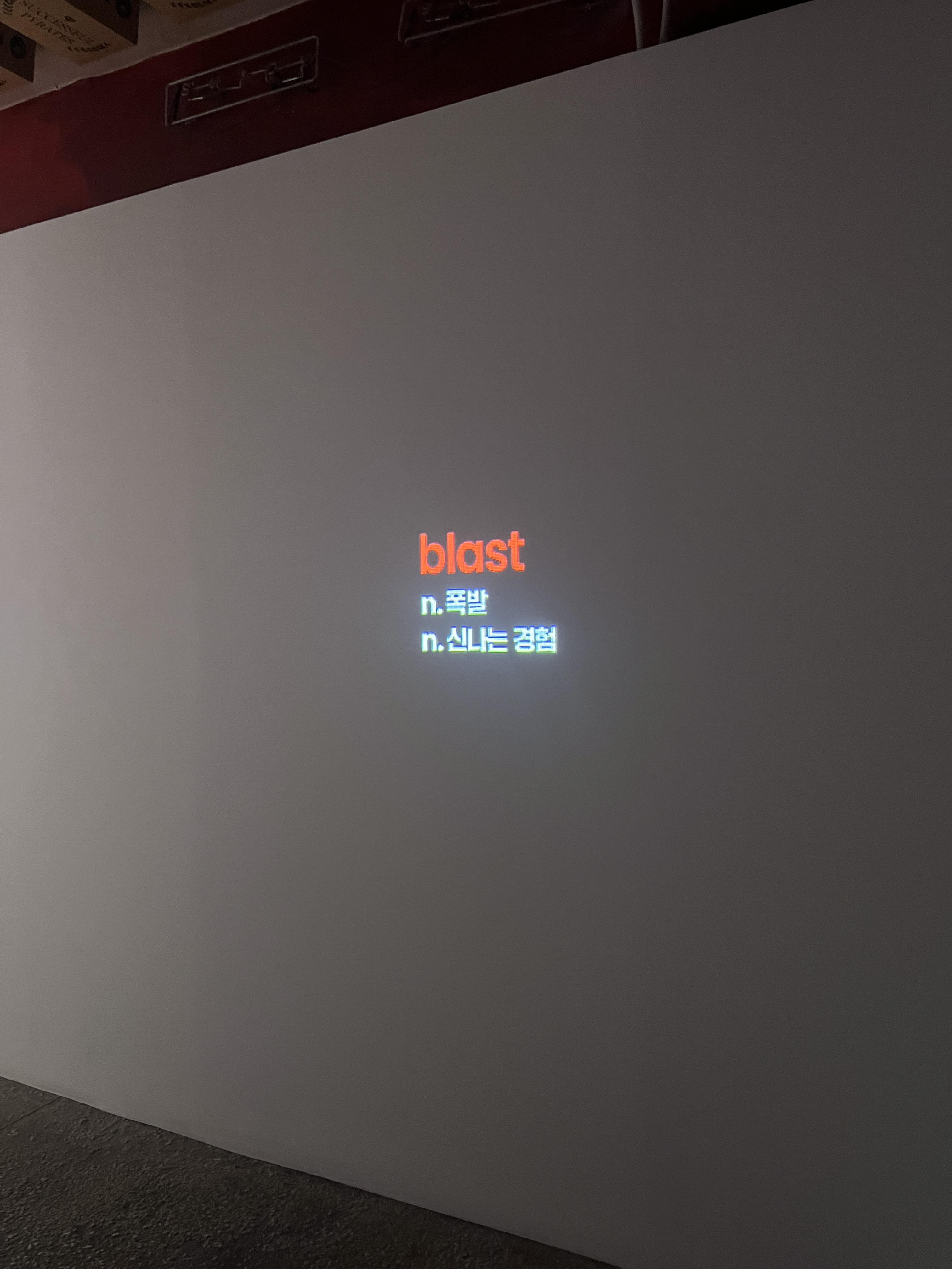 처음 팝업스토어를 들어가면 왜 blast(블라스트)라고 했는지 그 의미가 나오고