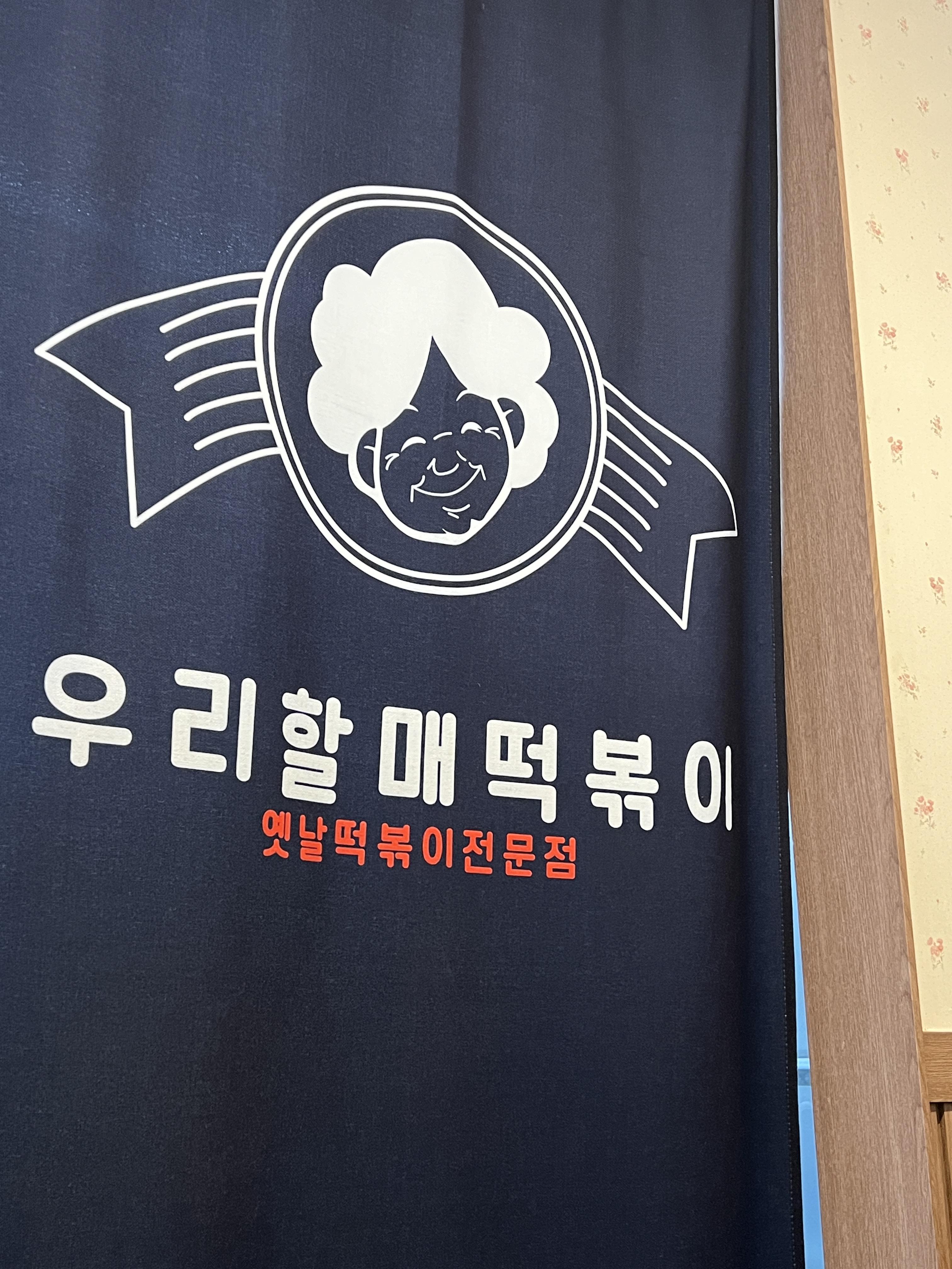 동글동글한 친숙한 폰트와 할머니 일러스트가 보이는 떡볶이집 '우리할매떡볶이'