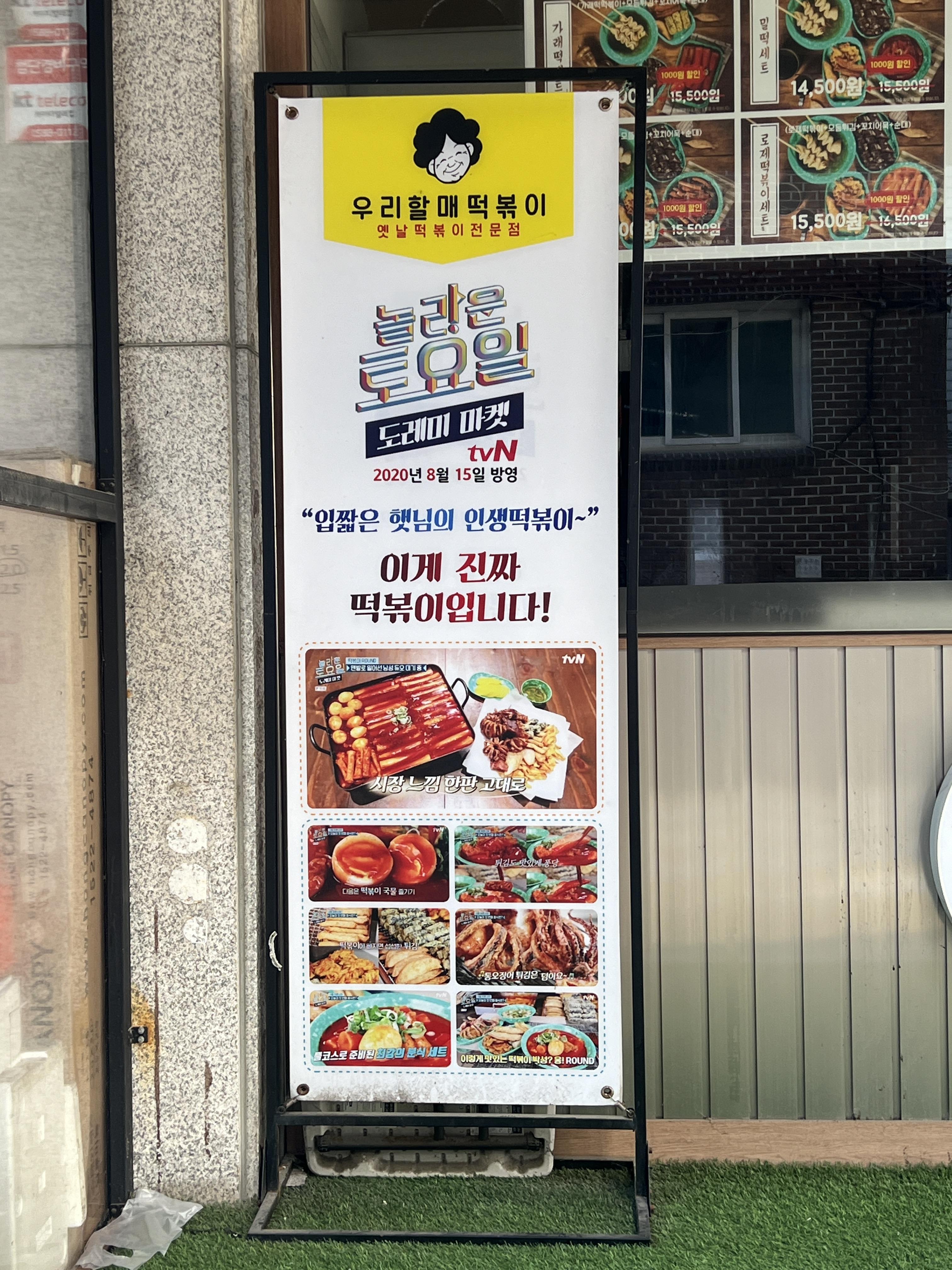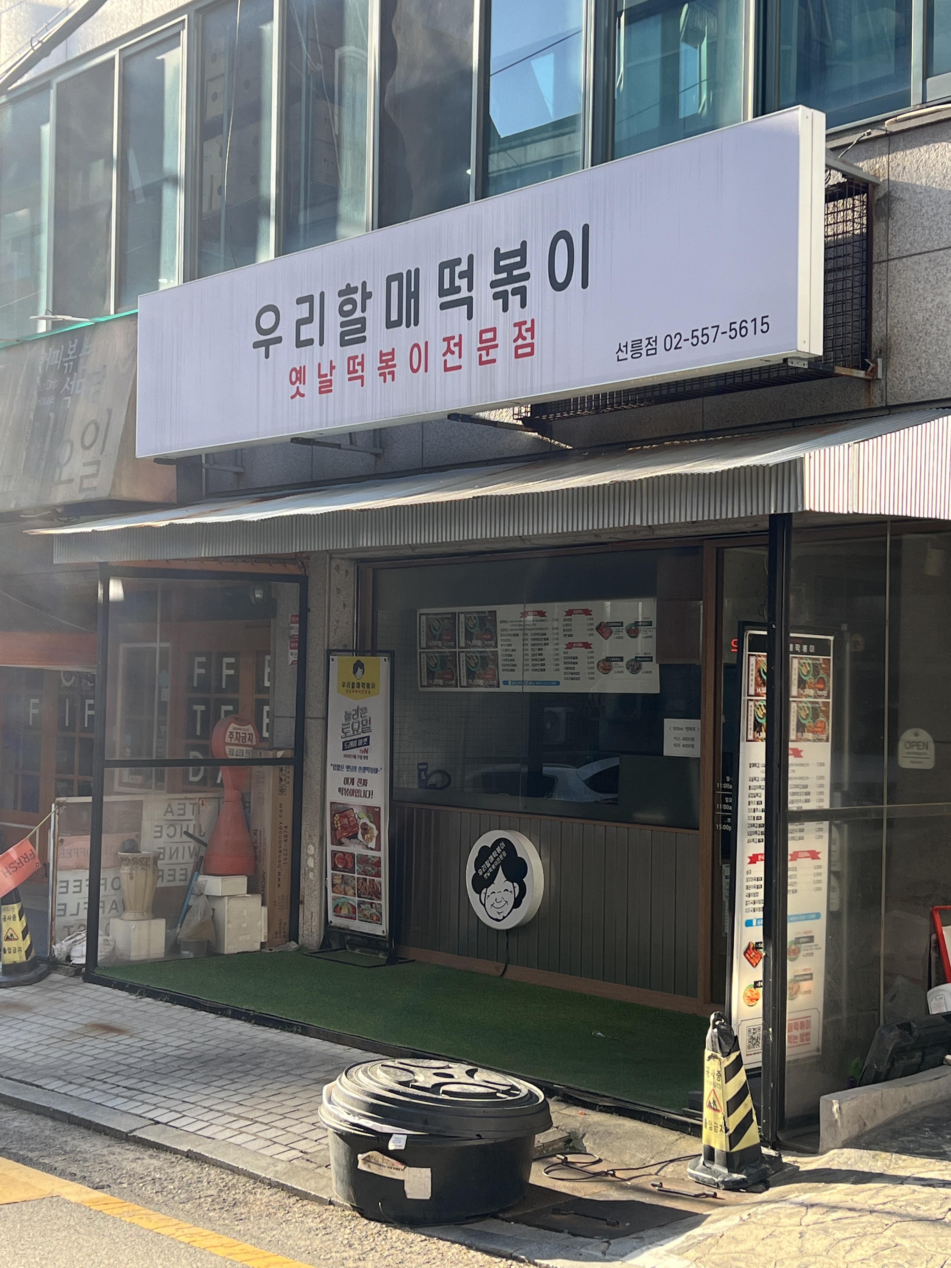 동글동글한 친숙한 폰트와 할머니 일러스트가 보이는 떡볶이집 '우리할매떡볶이'