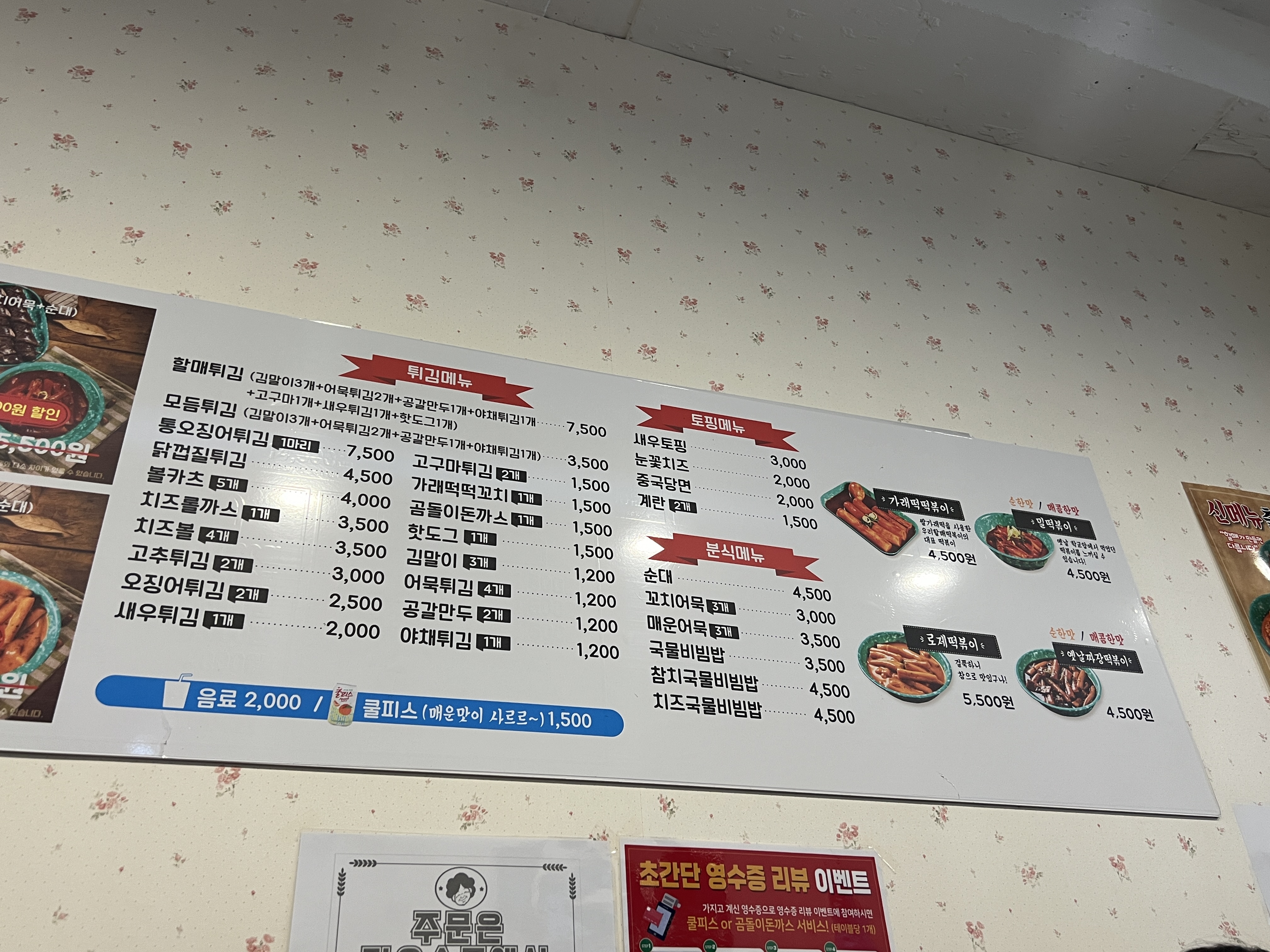 메뉴판에는 없지만 키오스크에 있는 메뉴키도 있기 때문에