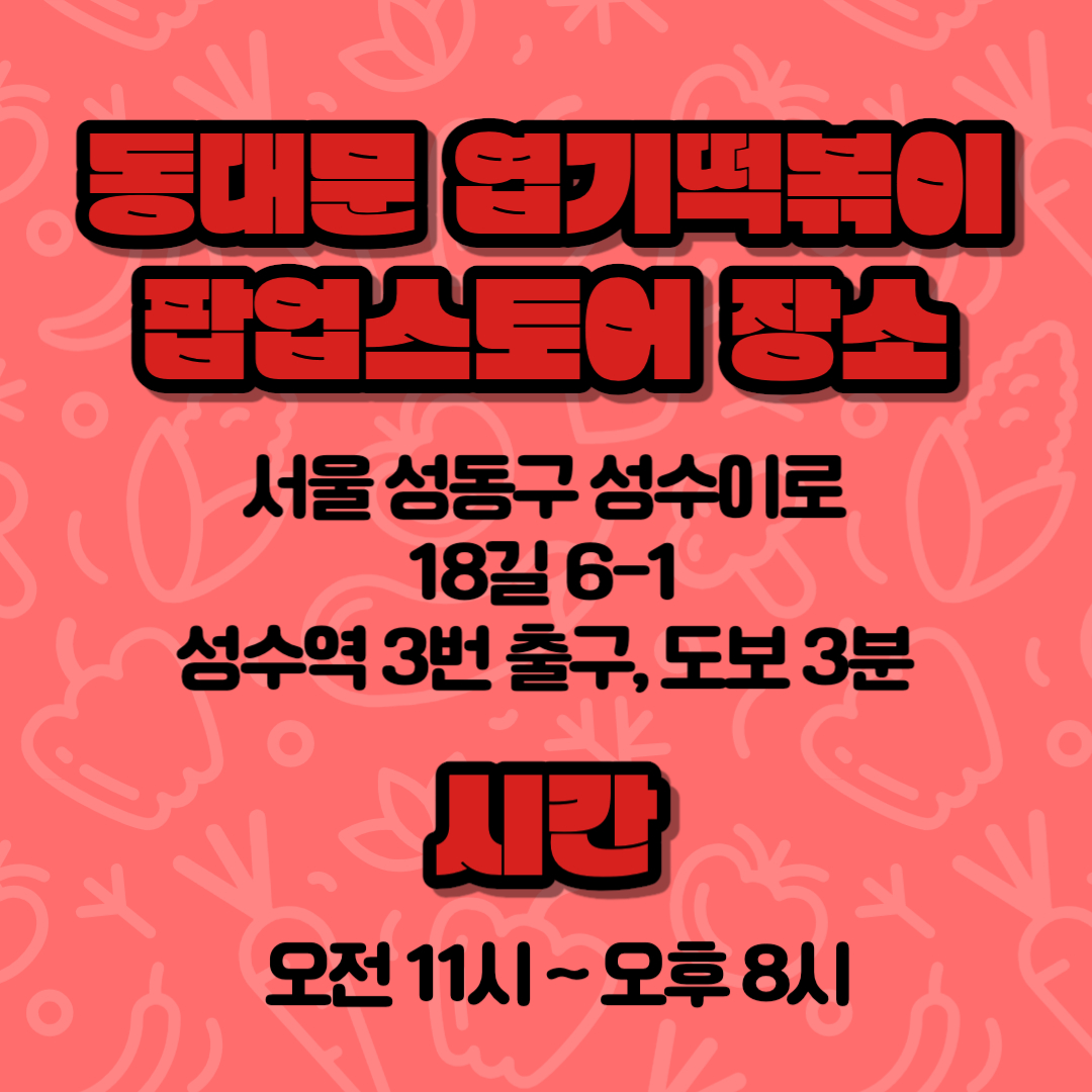 동대문 엽기떡볶이 팝업스토어가 10월 20일(금)부터 시작되어 11월 12일(일)까지 진행됩니다!