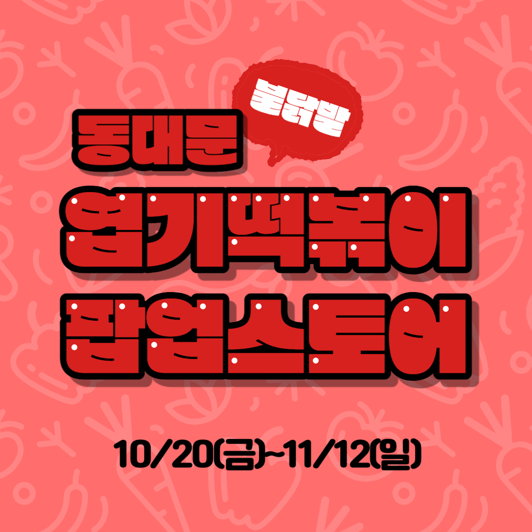 동대문 엽기떡볶이 팝업스토어가 10월 20일(금)부터 시작되어 11월 12일(일)까지 진행됩니다!
