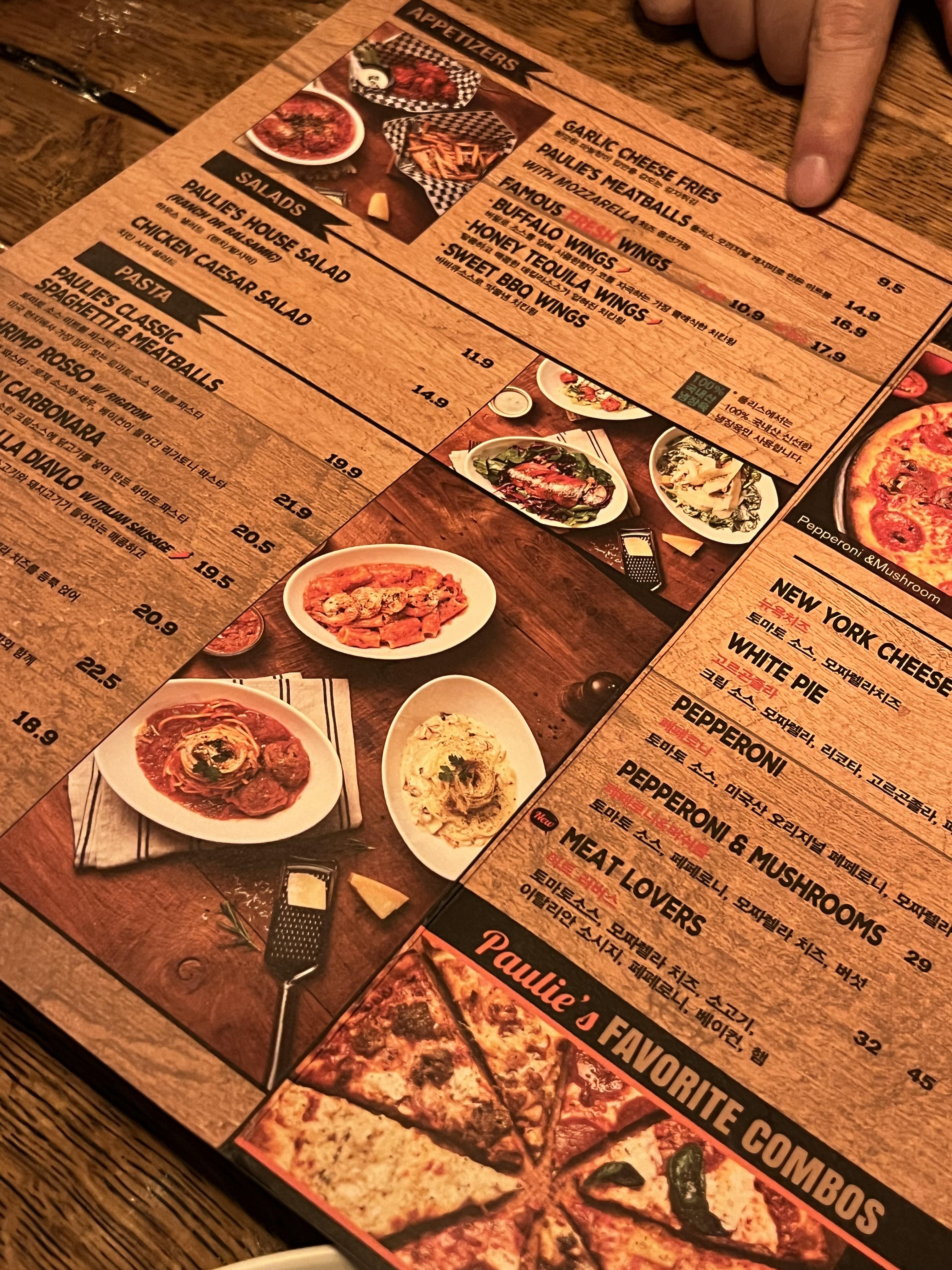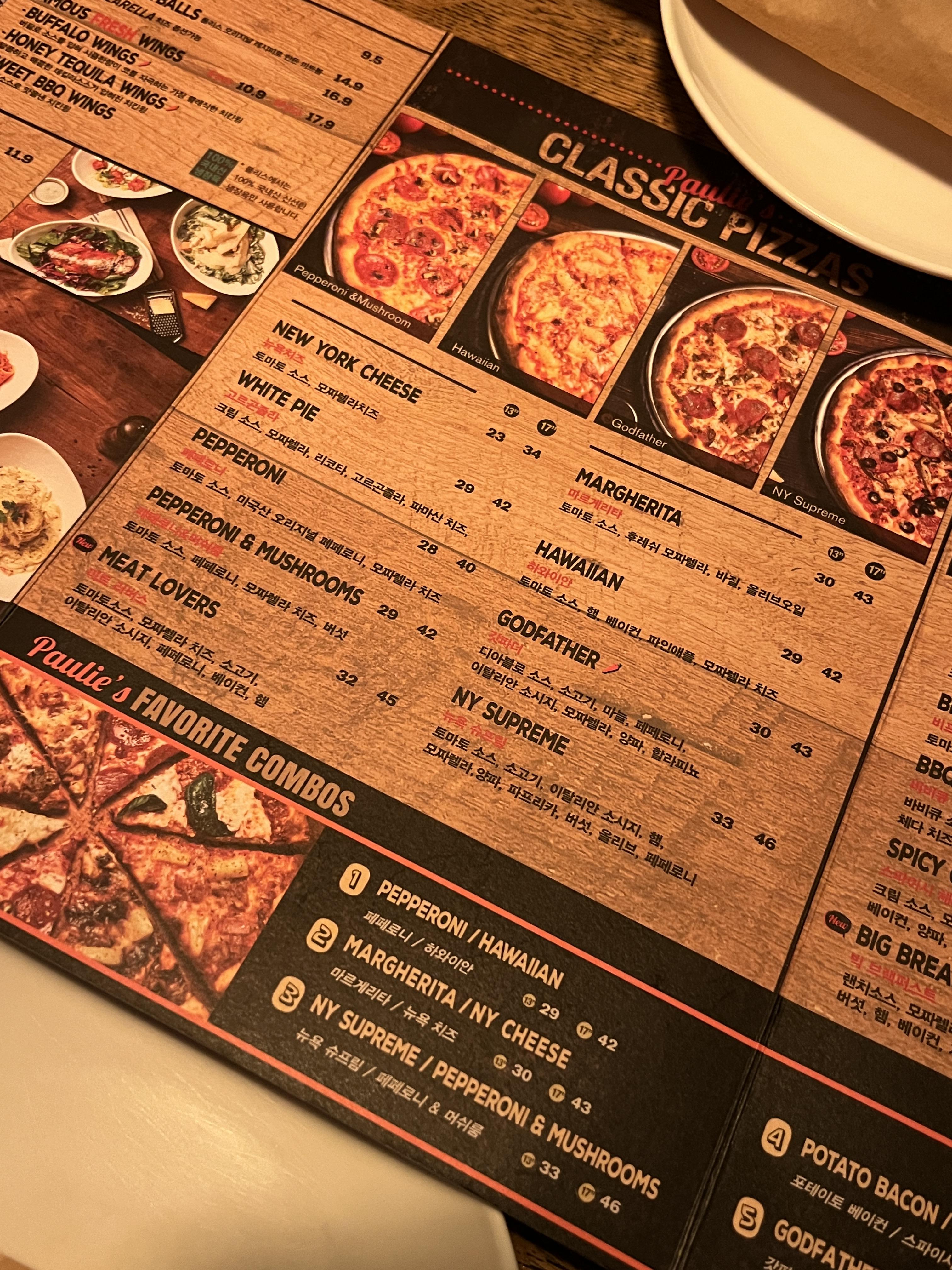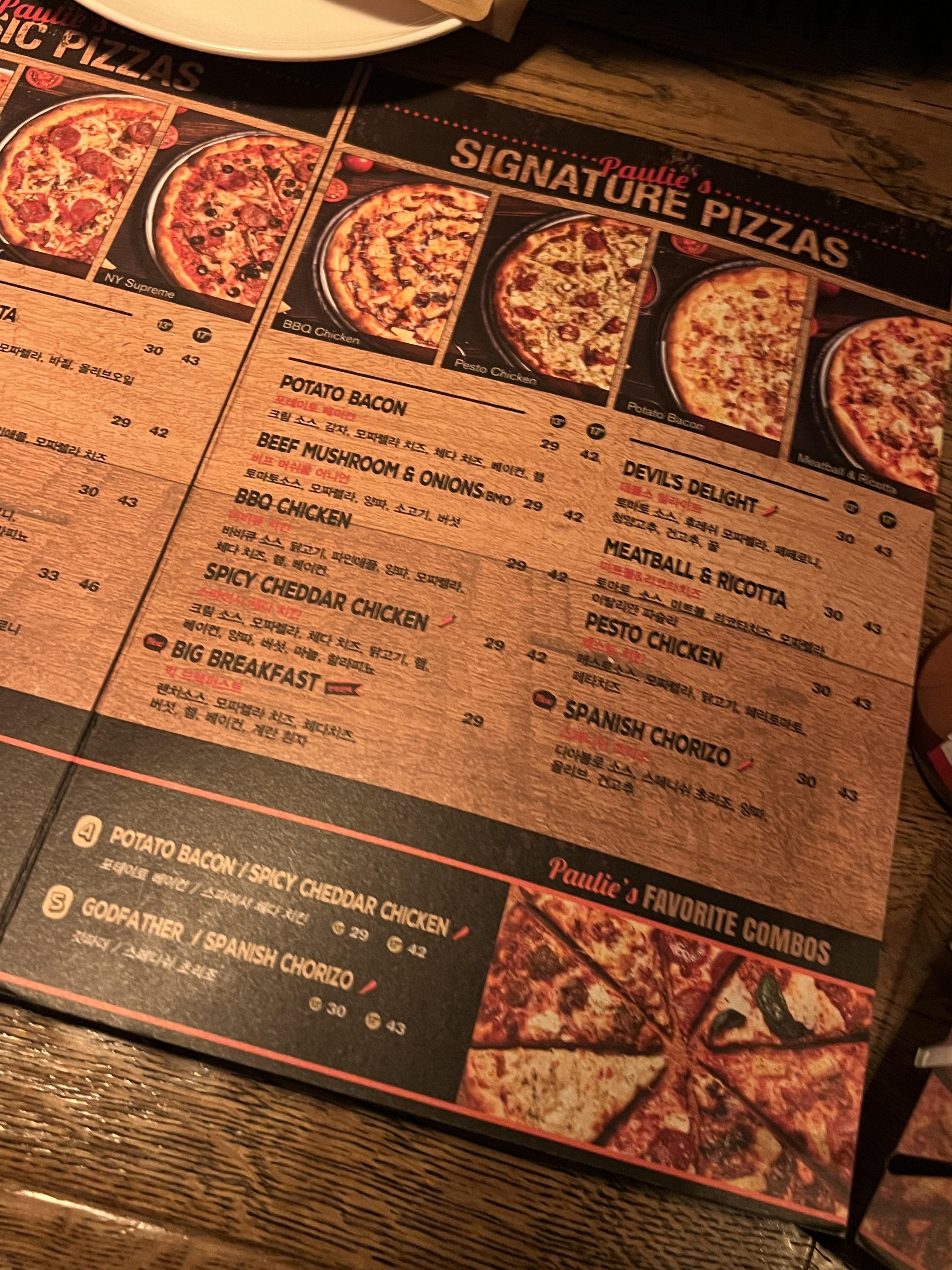 4명이서 피자 한판에 감자튀김으로 배가 부른 지 메뉴판만 보면 계속 생각하게 되는데,