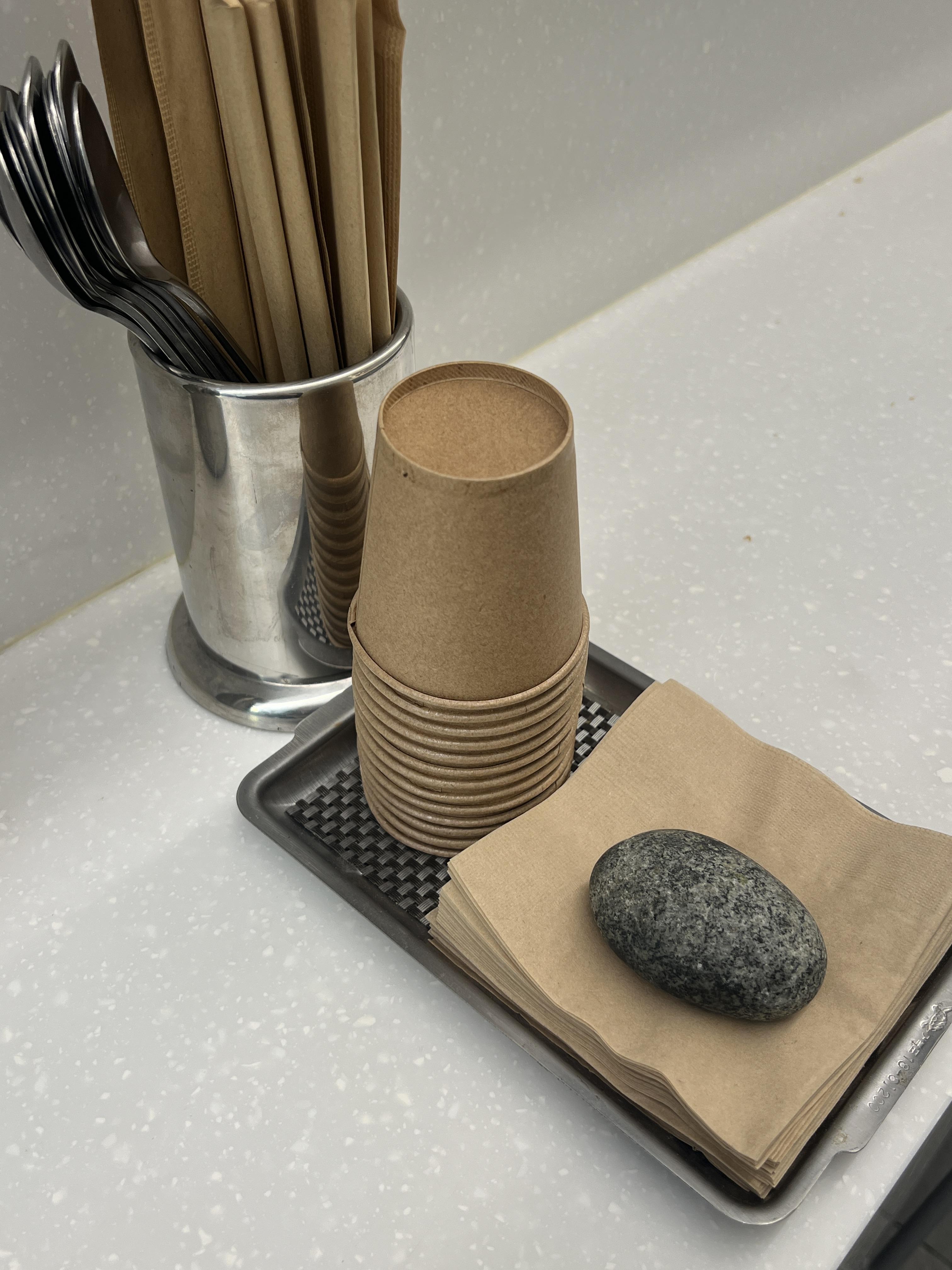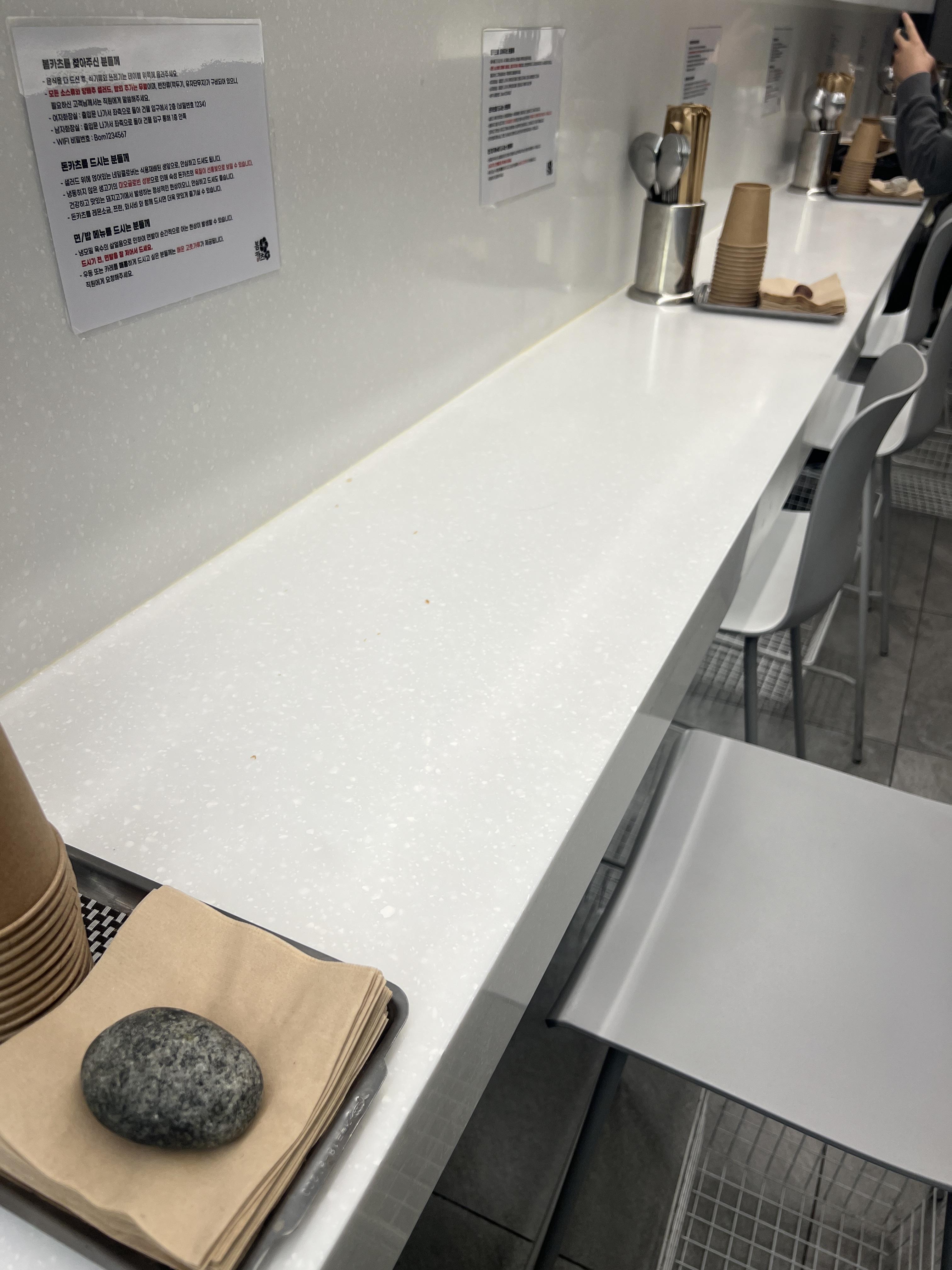 냅킨 위에 올려둔 돌멩이도 동글동글 매끄럽고 이쁘게 되어있는 거 같네요.