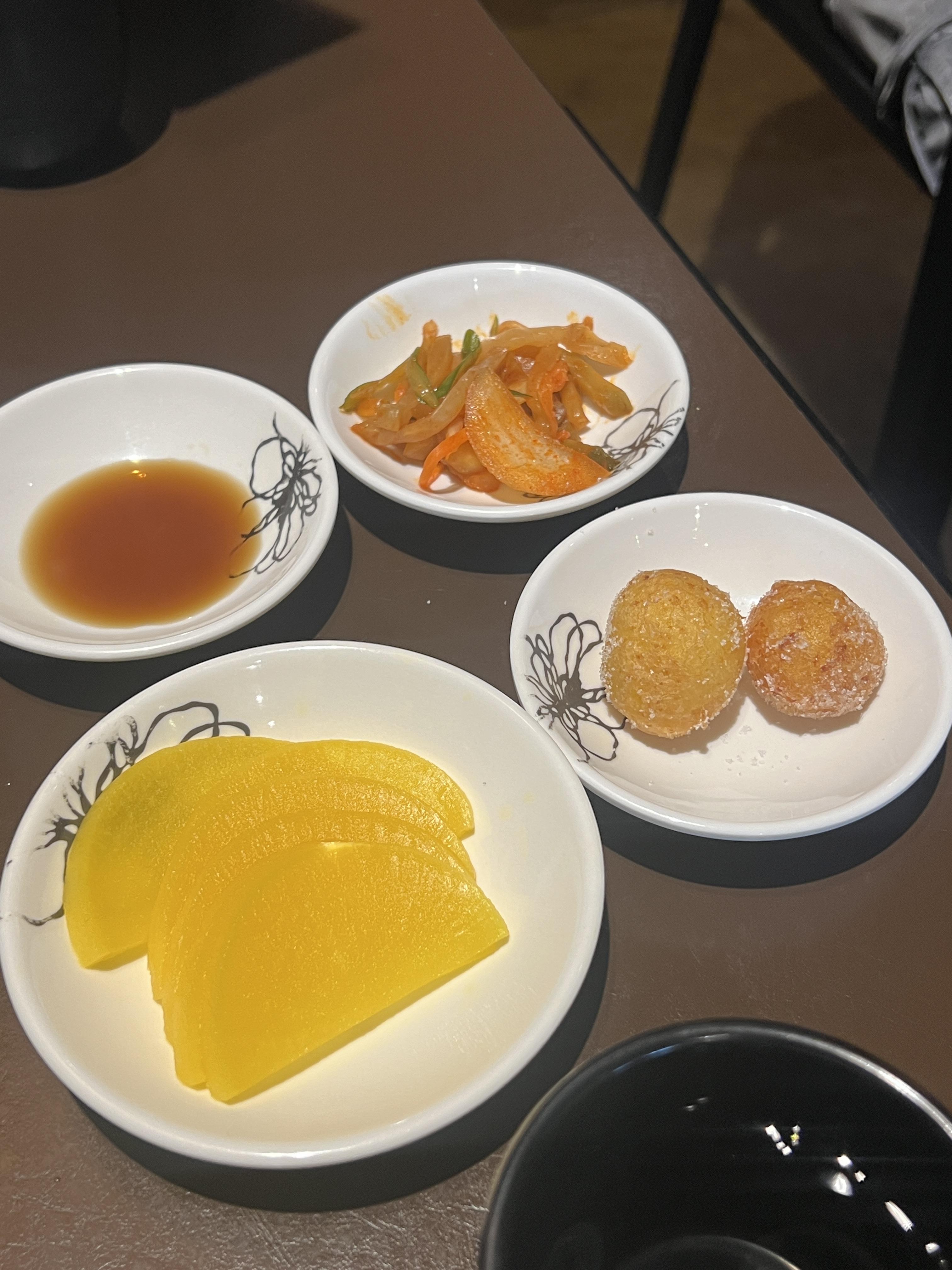 기본 상차림에 찹쌀도넛 같은 게 나오더라고요.