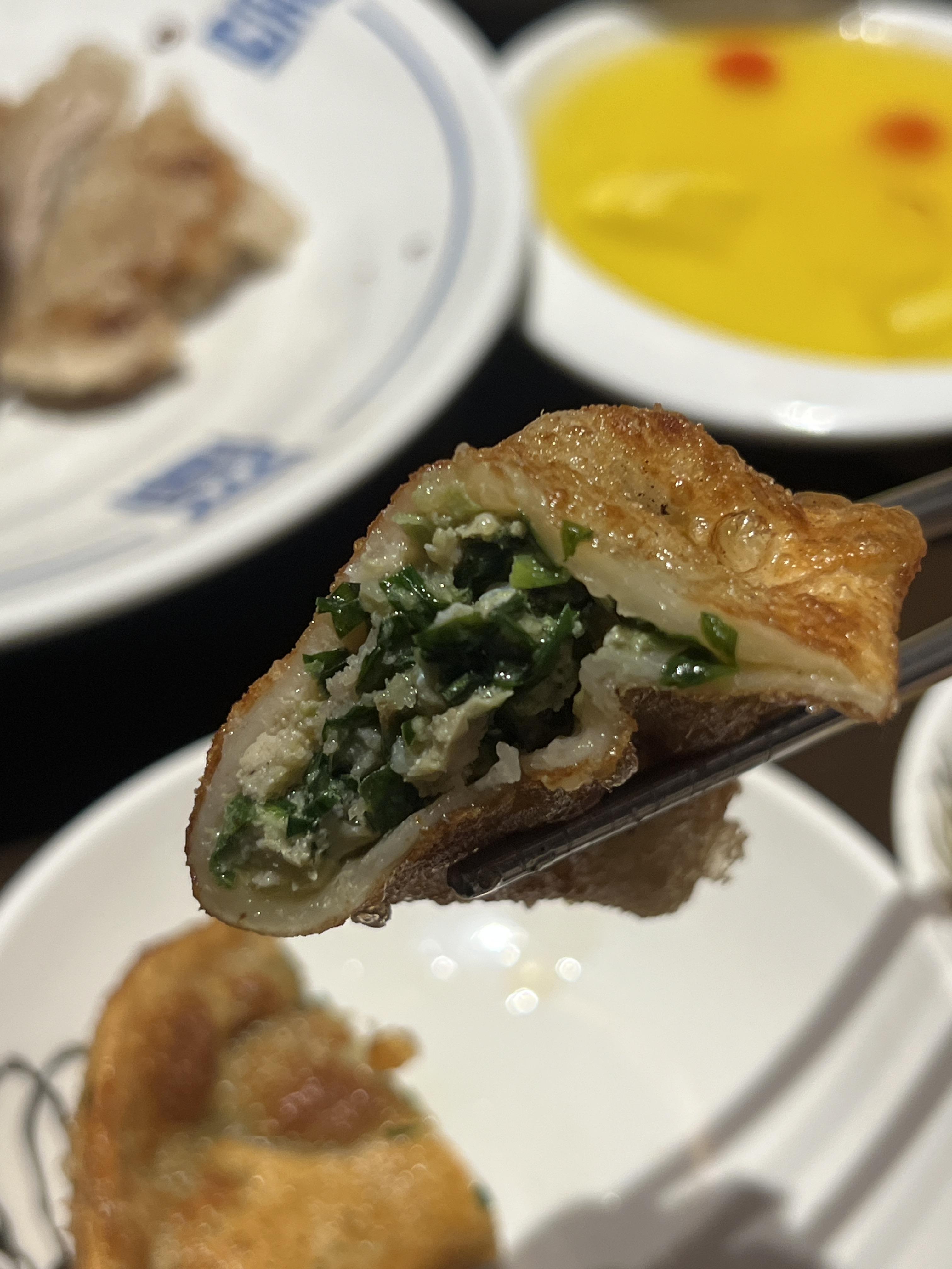 겉은 가토 튀긴 바삭한 만두피지만 만두피 속은 정말 쫄깃하고, 만두를 가득 채운 부추와 고기 등 부재료들이