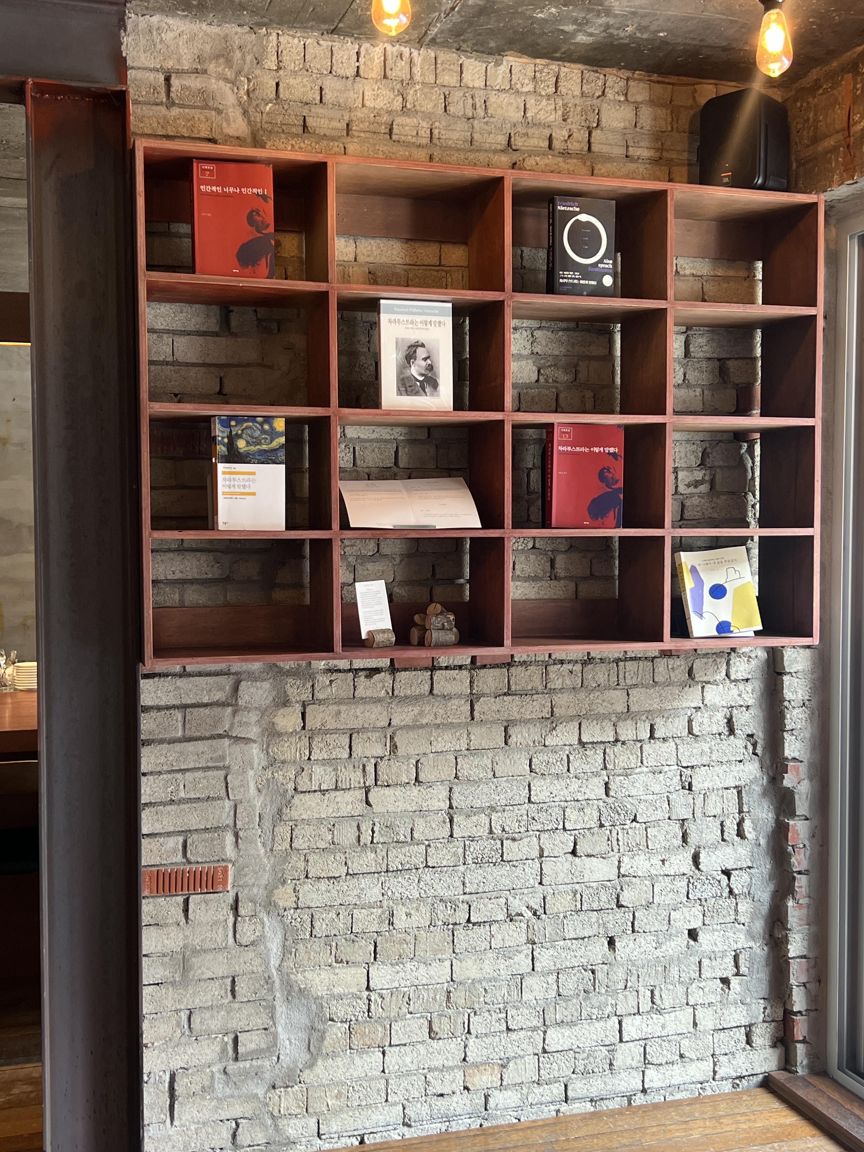한쪽 구석에는 인문학적인 책들이 벽장을 장식하고 있었어요.