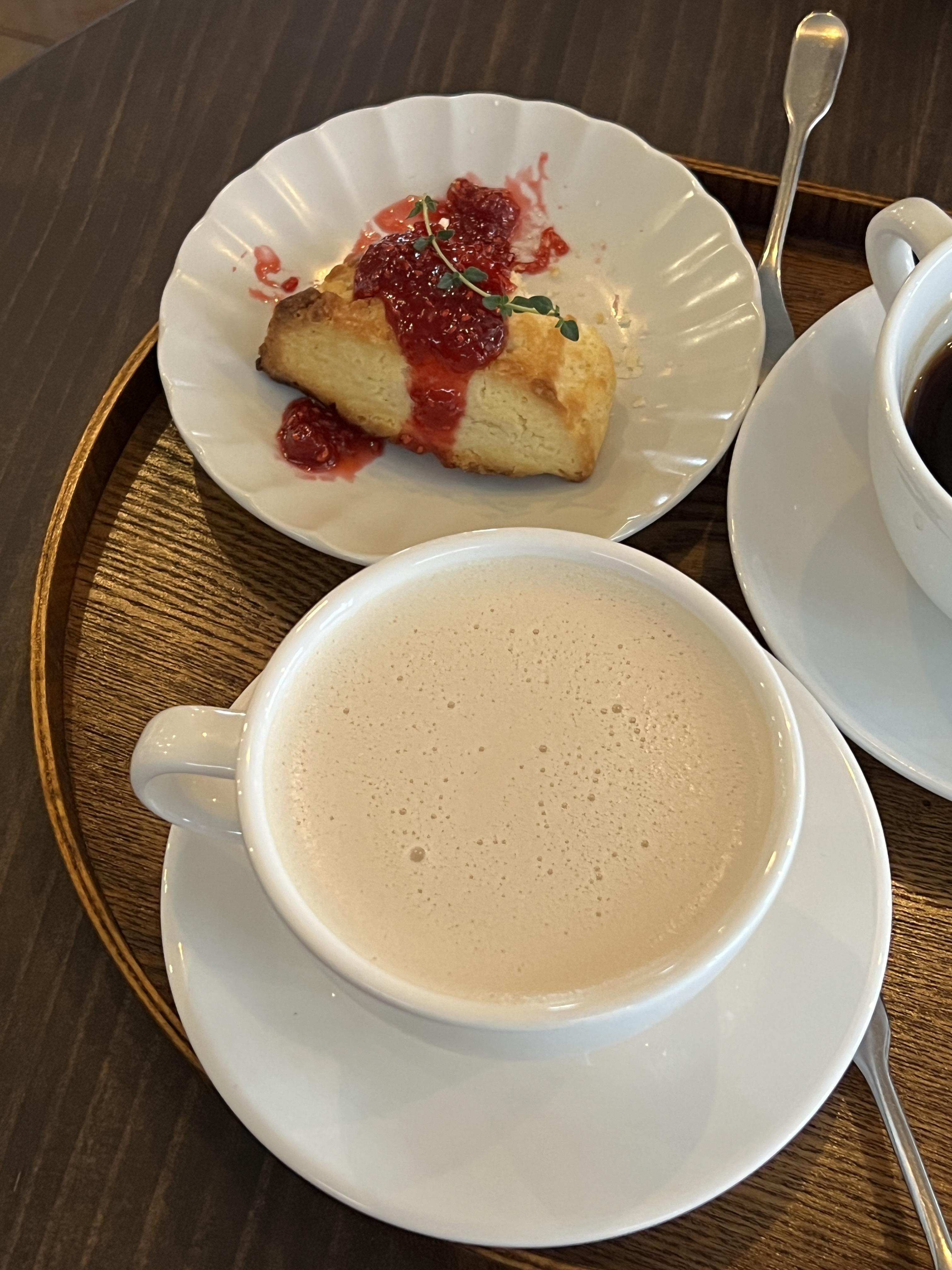 스콘은 적당한 부드러움에 라즈베리잼이 인공적인 단맛이 있지 않고 적당한 과일의 단맛으로 스콘과 어우러져