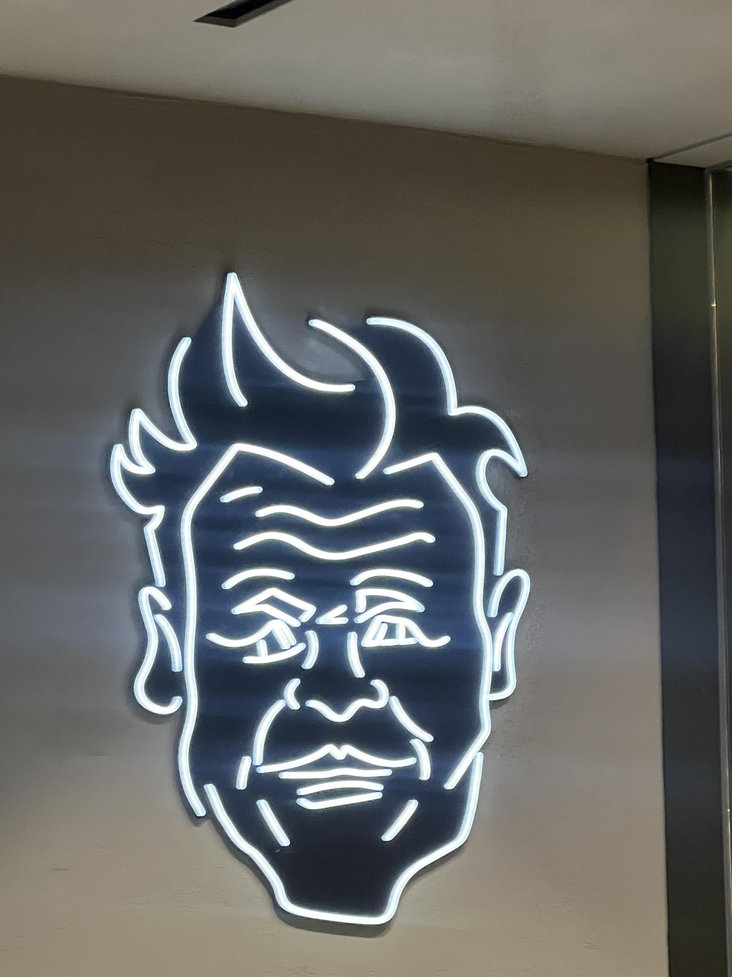 벽면 한쪽에는 고든램지 셰프의 얼굴도 볼 수 있고 벽면에는 콜라나 감자튀김 등 메뉴를 활용하 작품을 볼 수 있습니다.