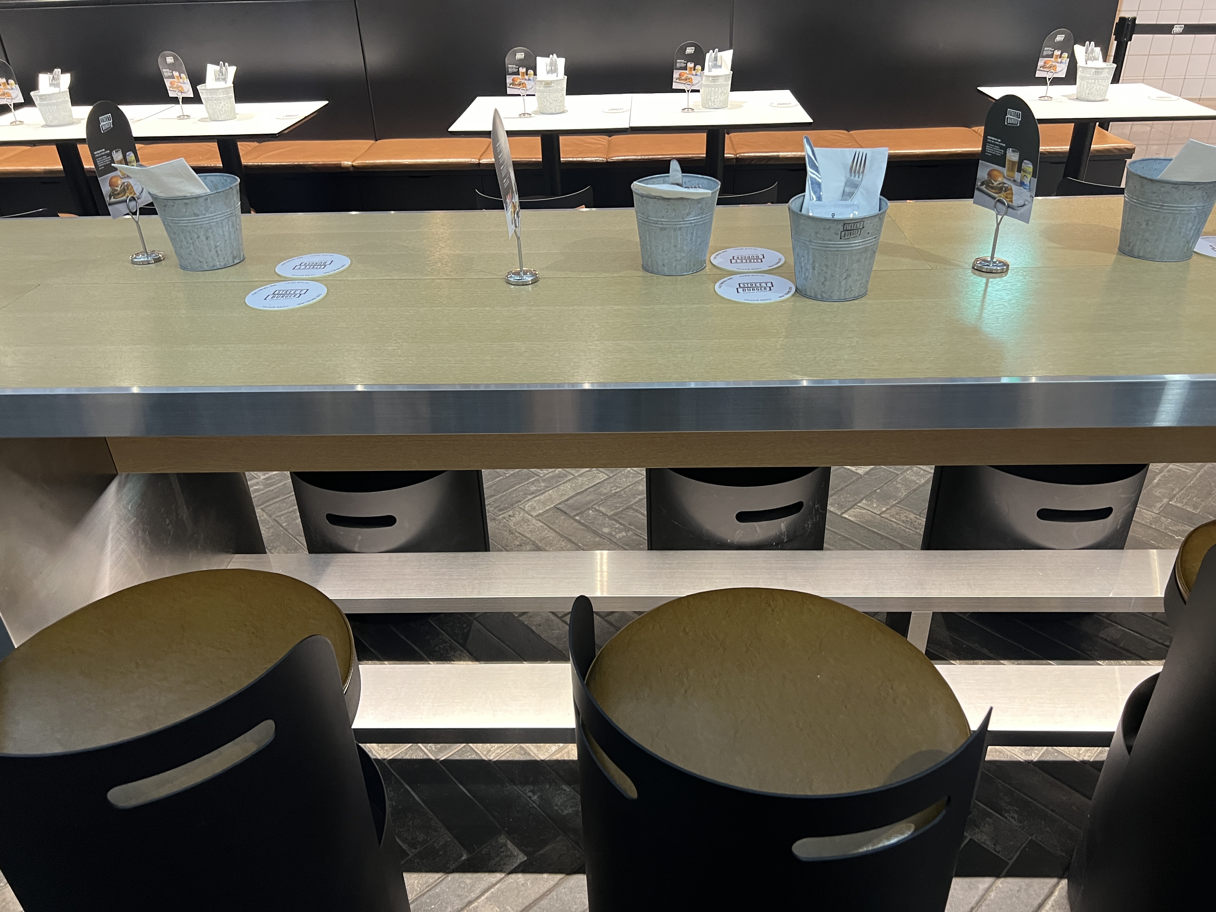 벽면에는 4인 테이블들이 있고, 매장 중앙에는 긴 테이블이 놓여있어 2명 또는 혼자서도 와서 편하게 먹을 수 있어 보입니다.