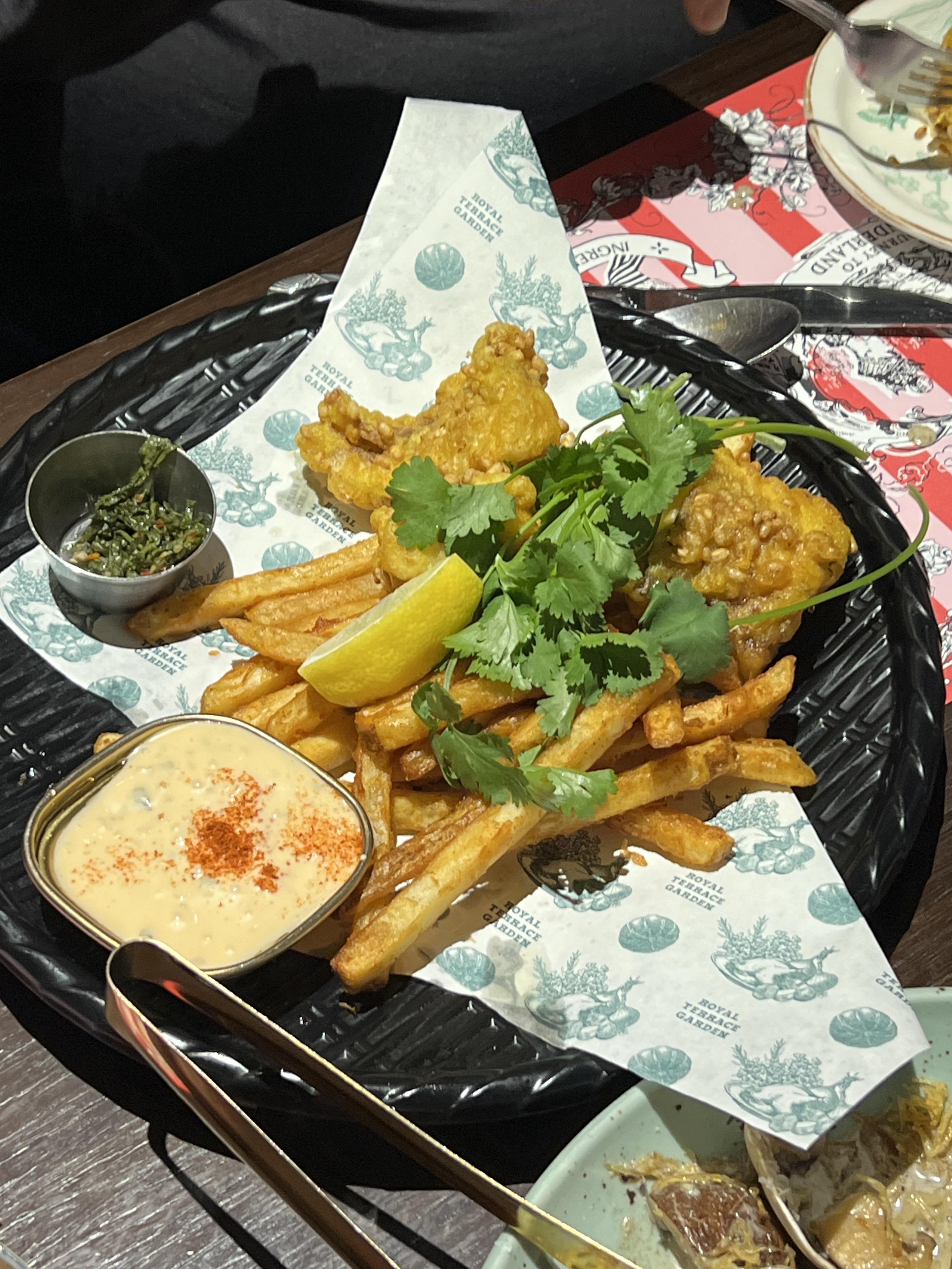 개인적으로 생선튀김은 잘 안 먹는데 느끼한 맛이 없어서 먹기 좋았던 거 같아요.