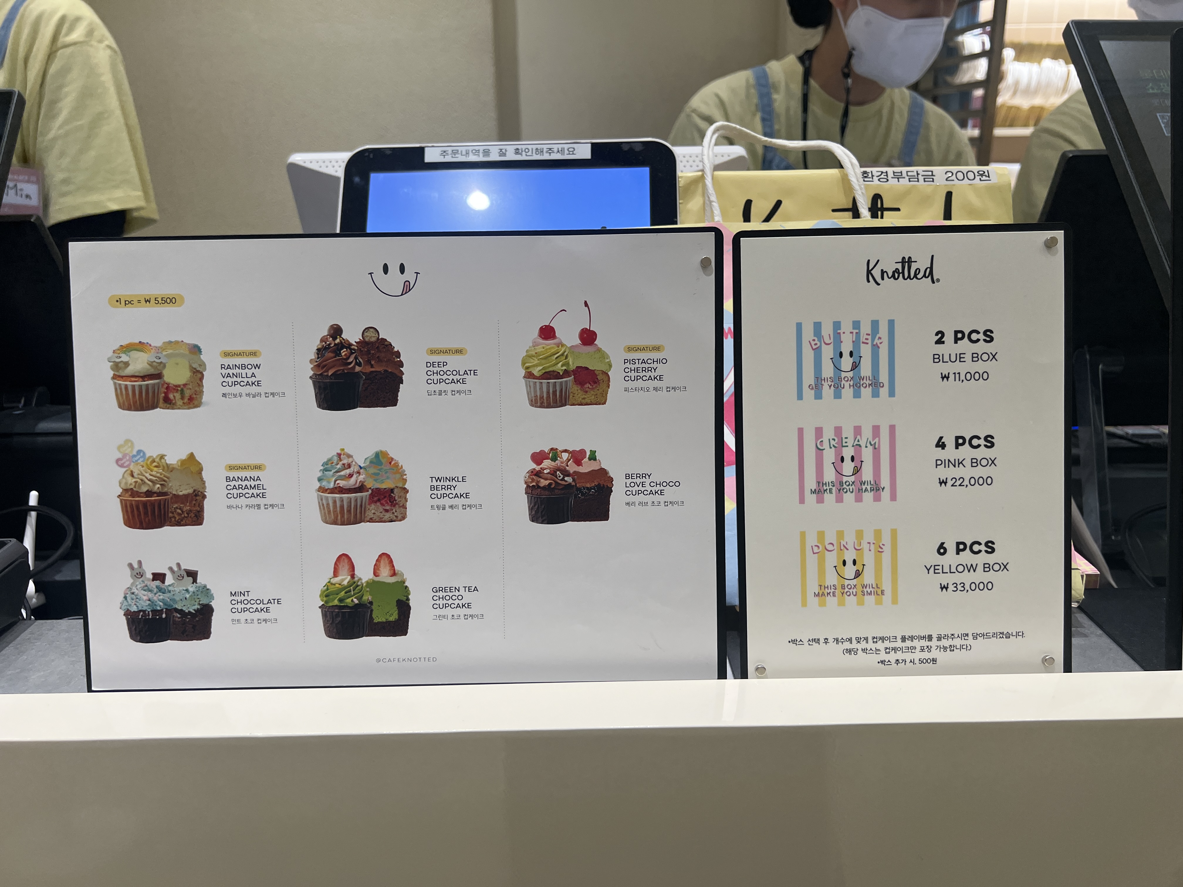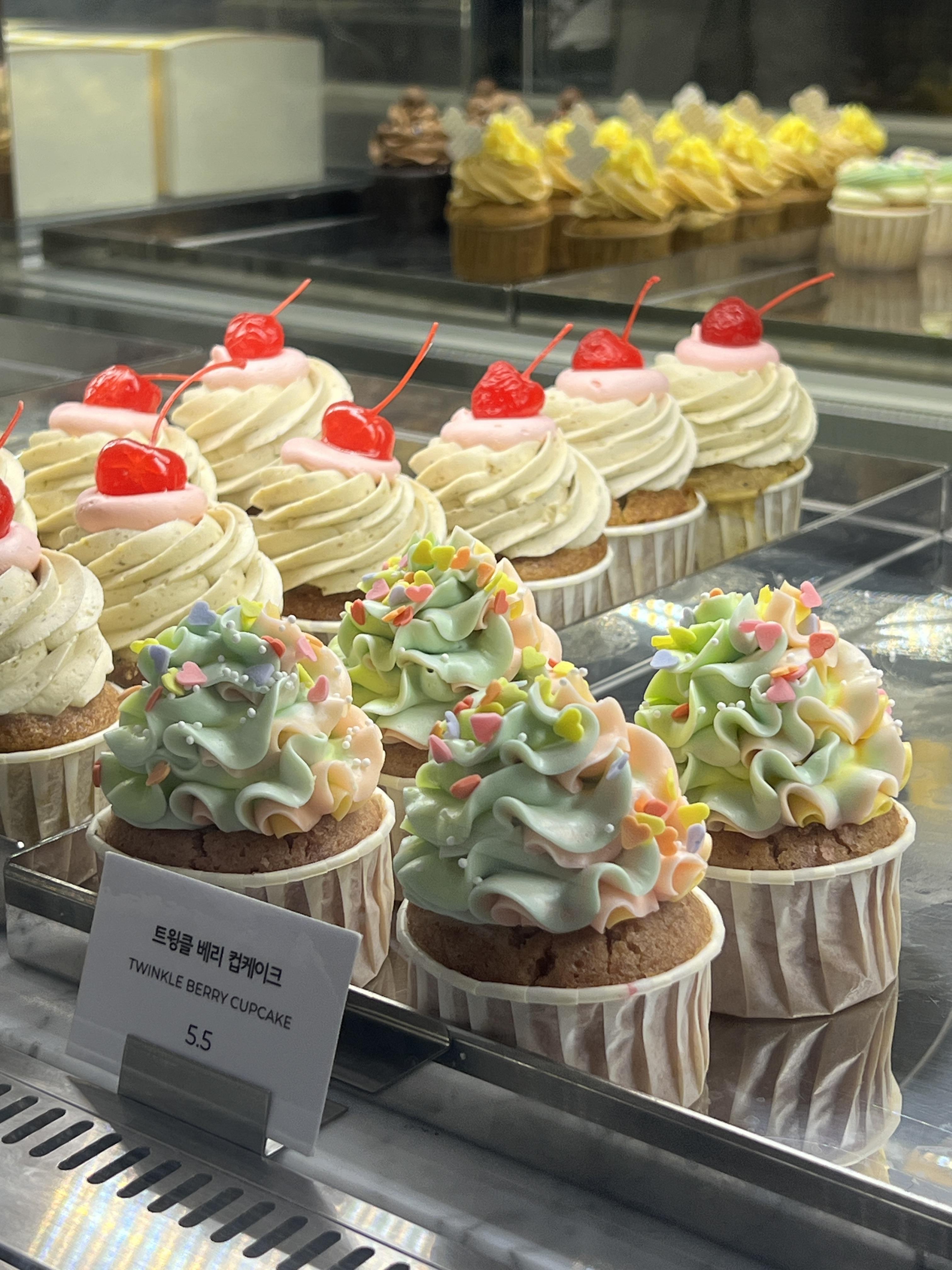 유독 컵케이크들이 화려하고 눈에 띄는 거 같고 앞에 줄 서있는 다른 고객분들도