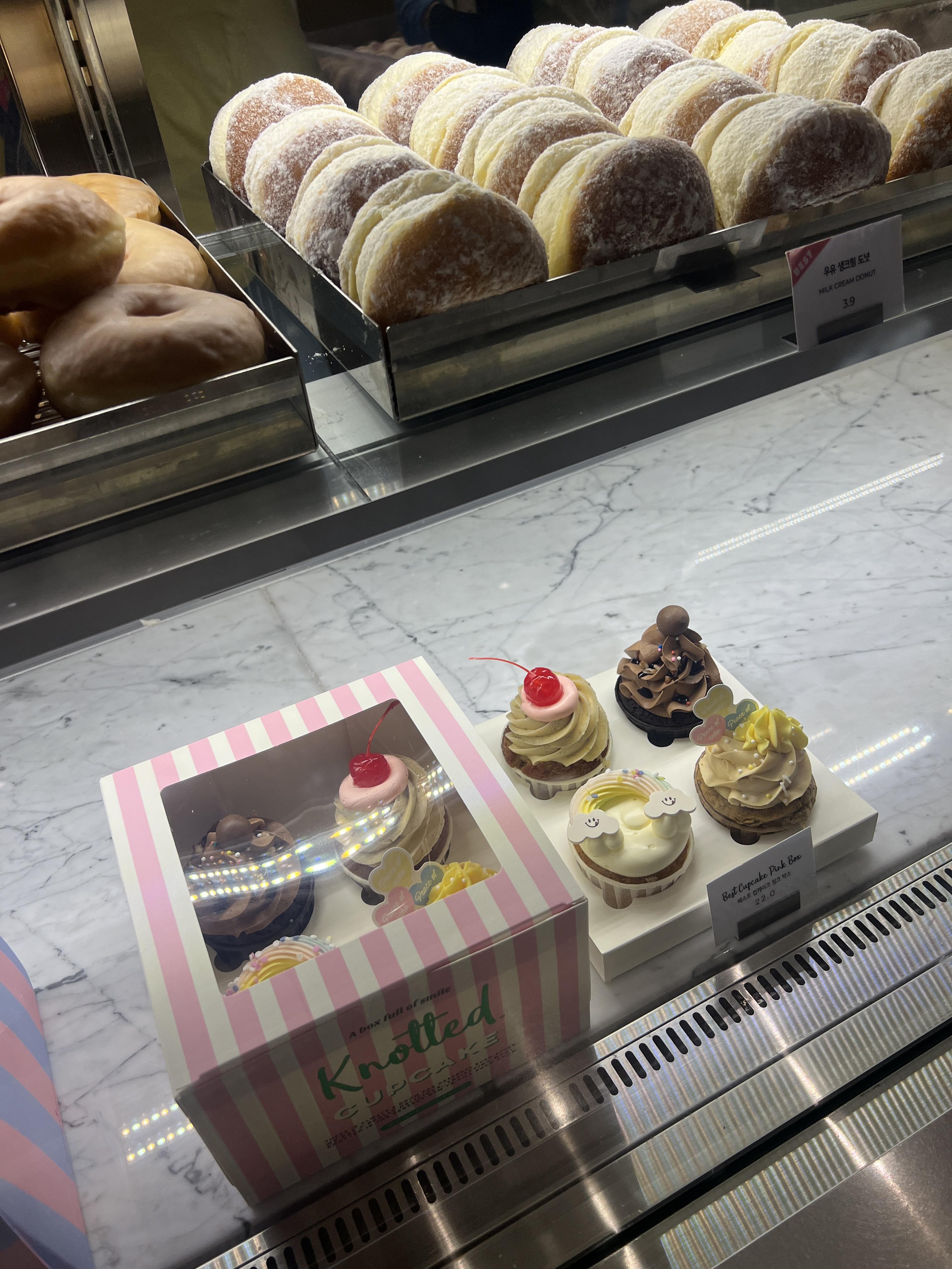 노티드의 가장 유명하고 자주 찾는 디저트 종류는 당연 도넛과 컵케이크인 거 같아요