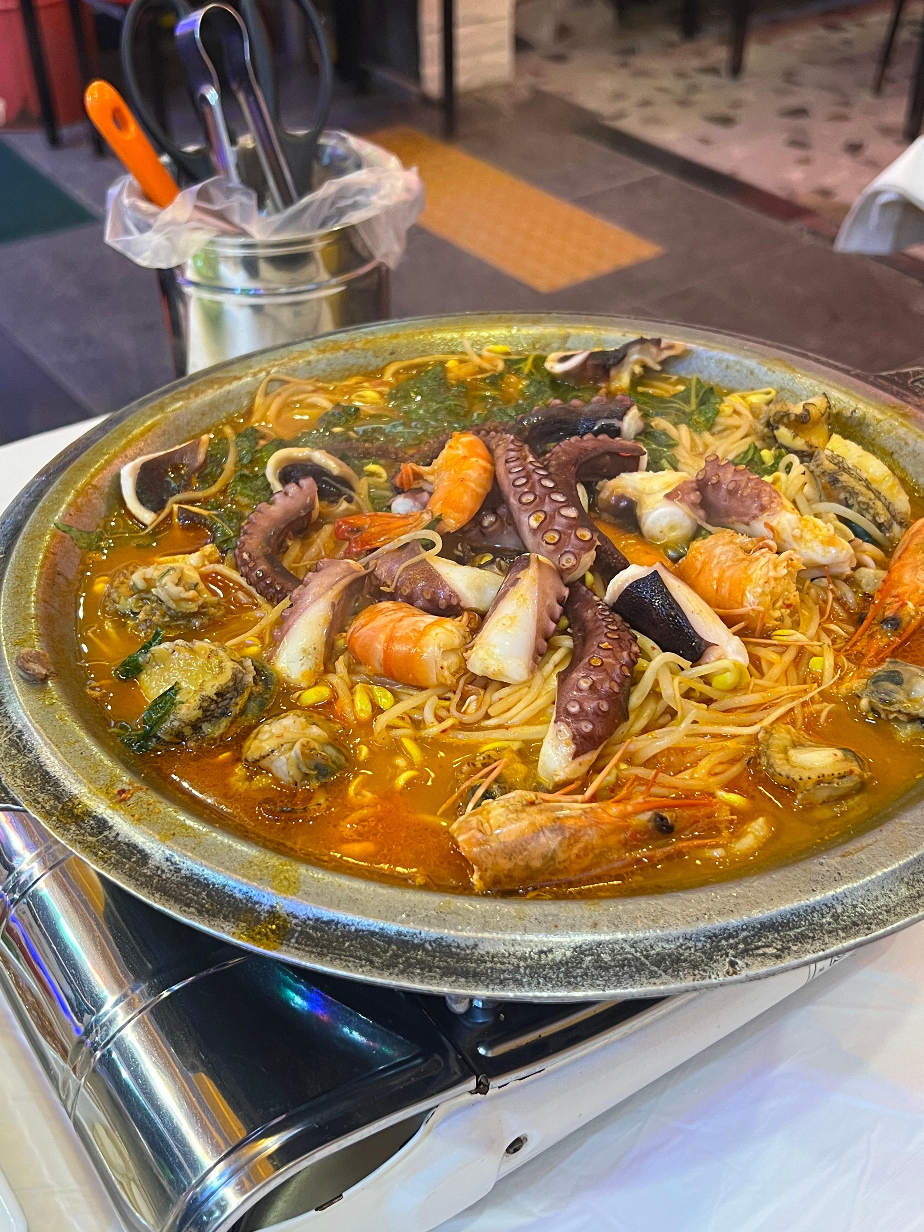 통통하고 신선한 여수 특산품인 돌문어와 진짜 삼겹살이 들어가 있어서 고기의 기름과 감칠맛이 최고였어요.