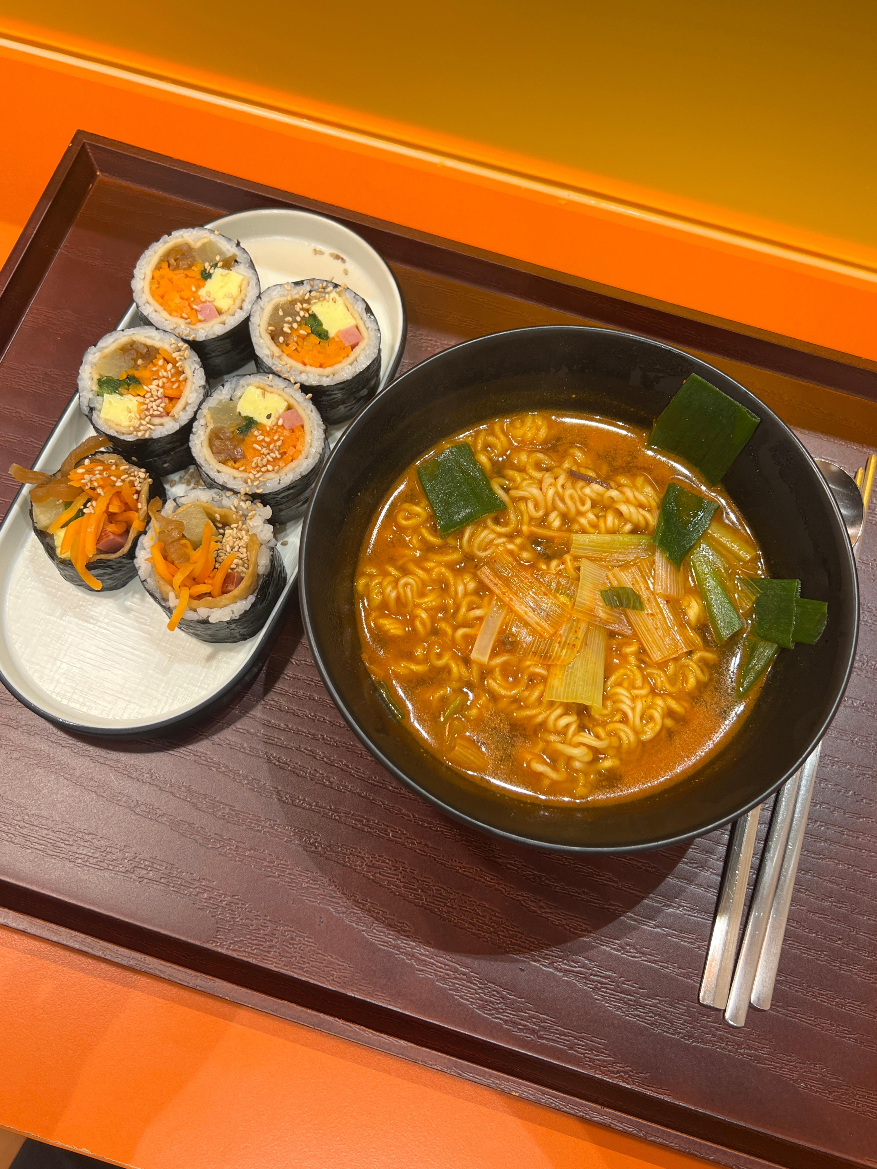 이날 주문한 메뉴는 김밥과 라면이었습니다.